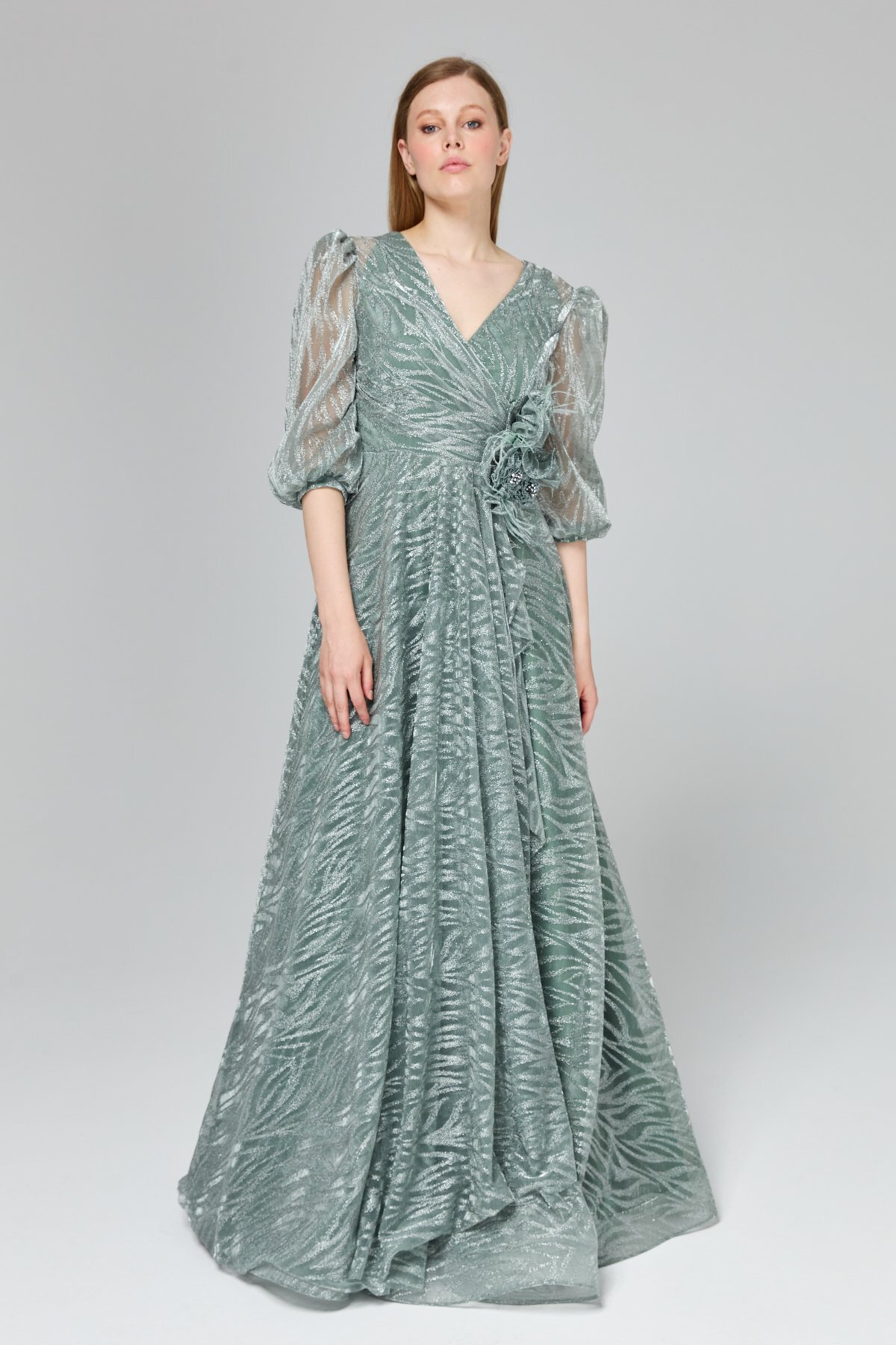 Nihan Simli Balon Kol Abiye Mint Özellikleri