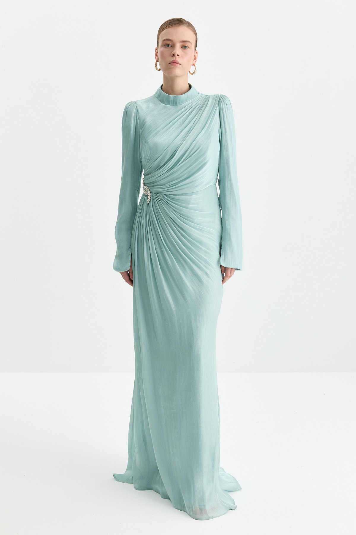 Nihan Taş Aksesuarlı Drapeli Abiye Mint Özellikleri