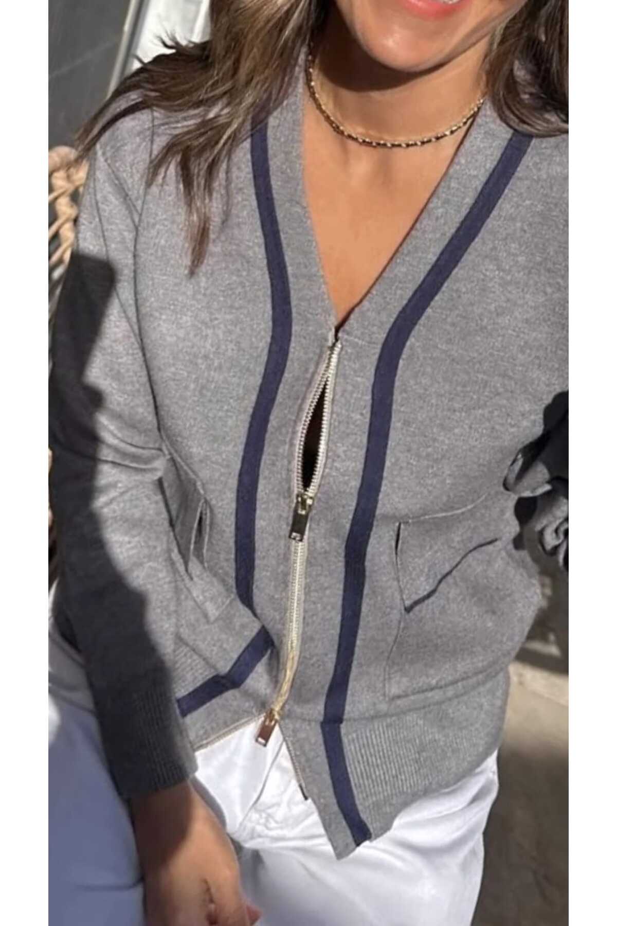 NÜANS MODA fermuarlı çelik hırka