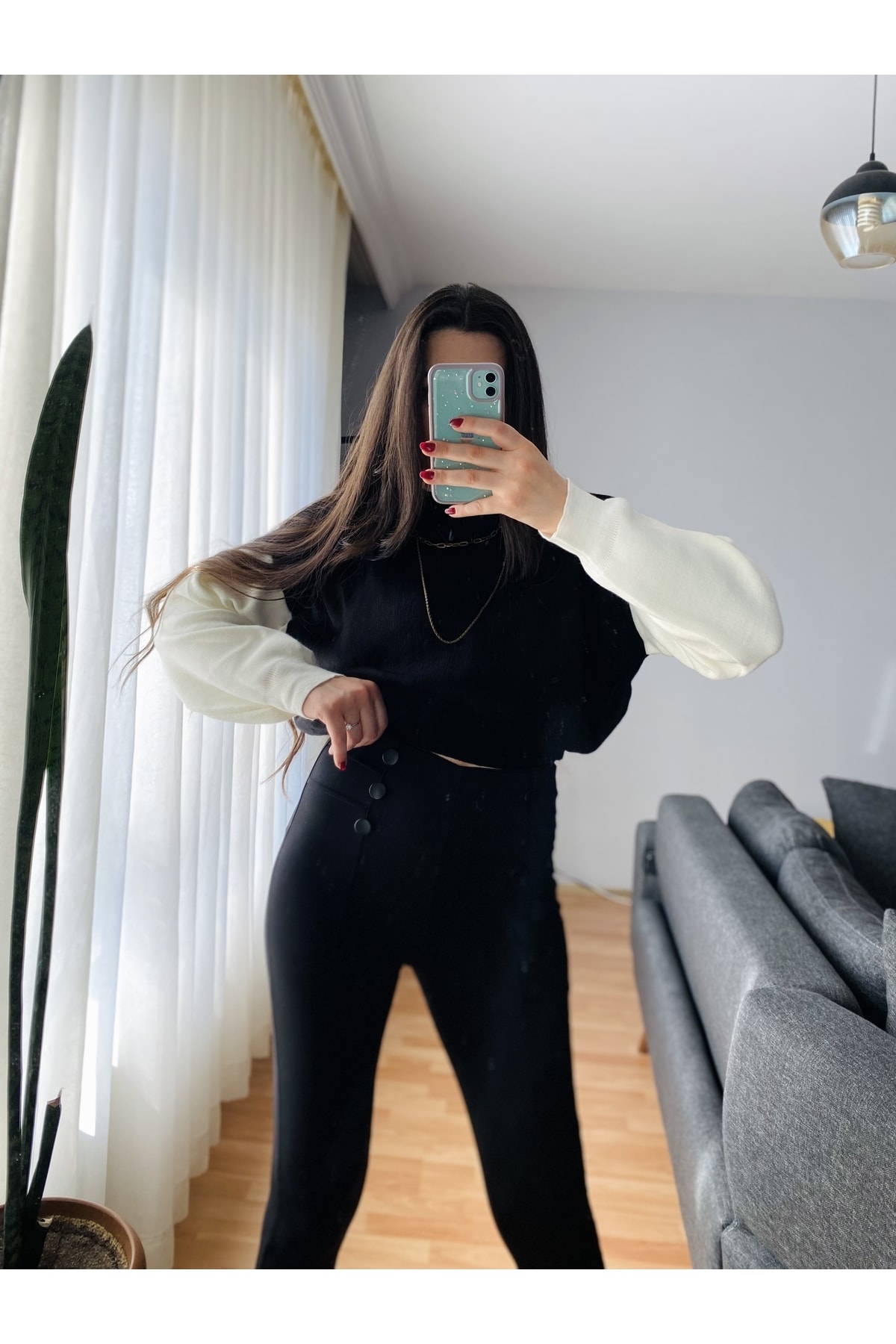 OOPS Siyah-krem Crop Kazak Özellikleri