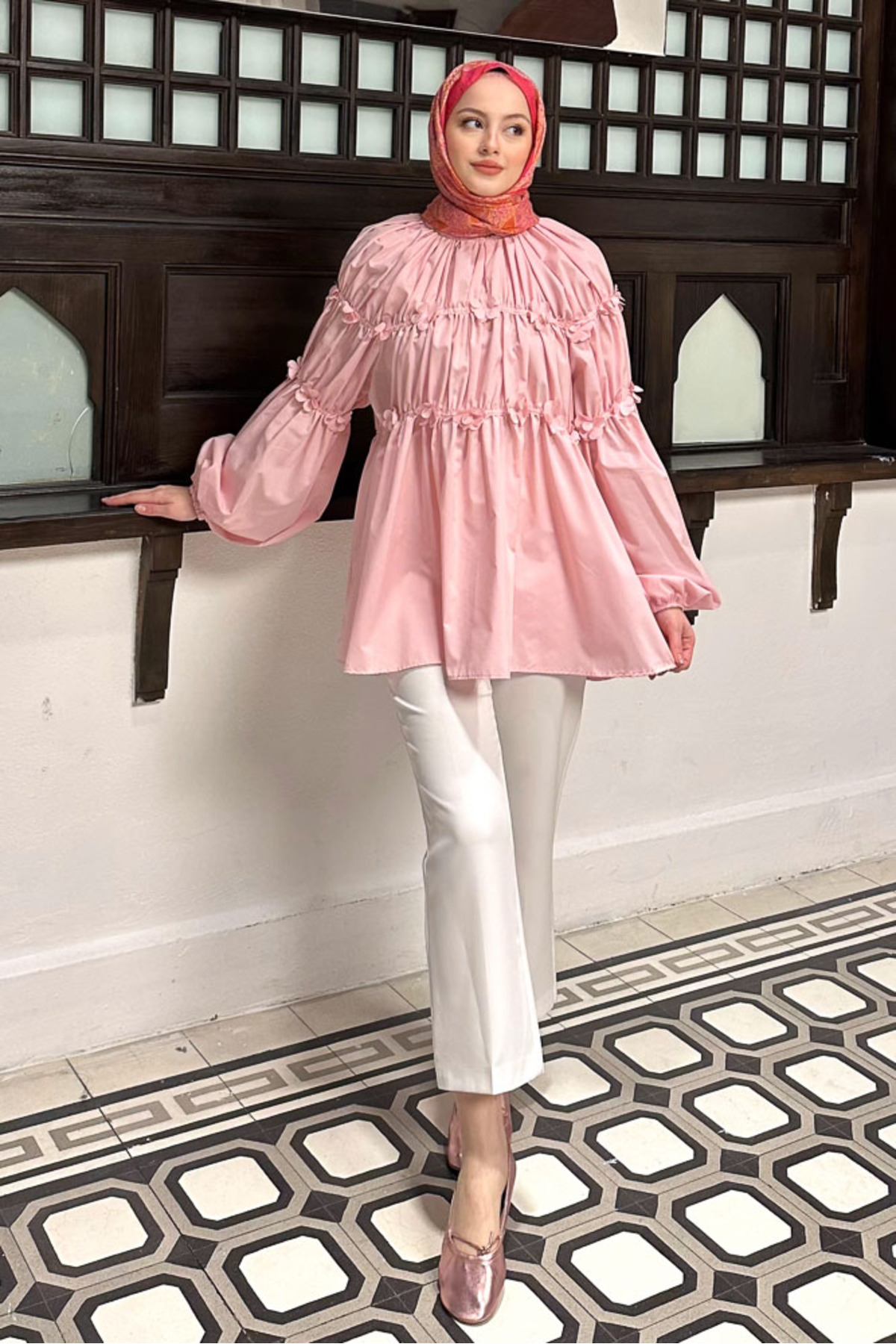 Ovn. Mini Çiçekli Gömlek - Pembe