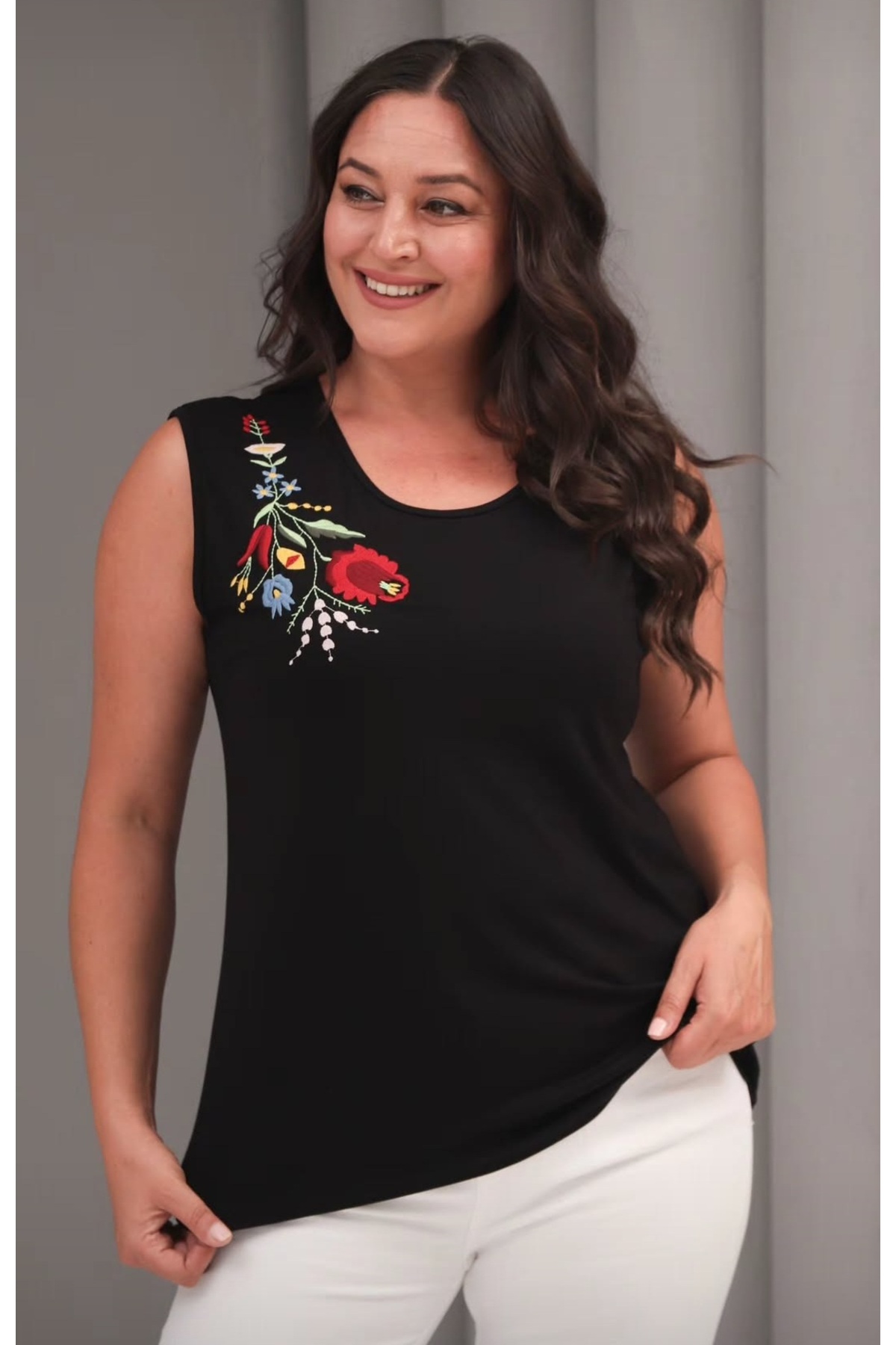 Özlemce Siyah nakışlı bluz