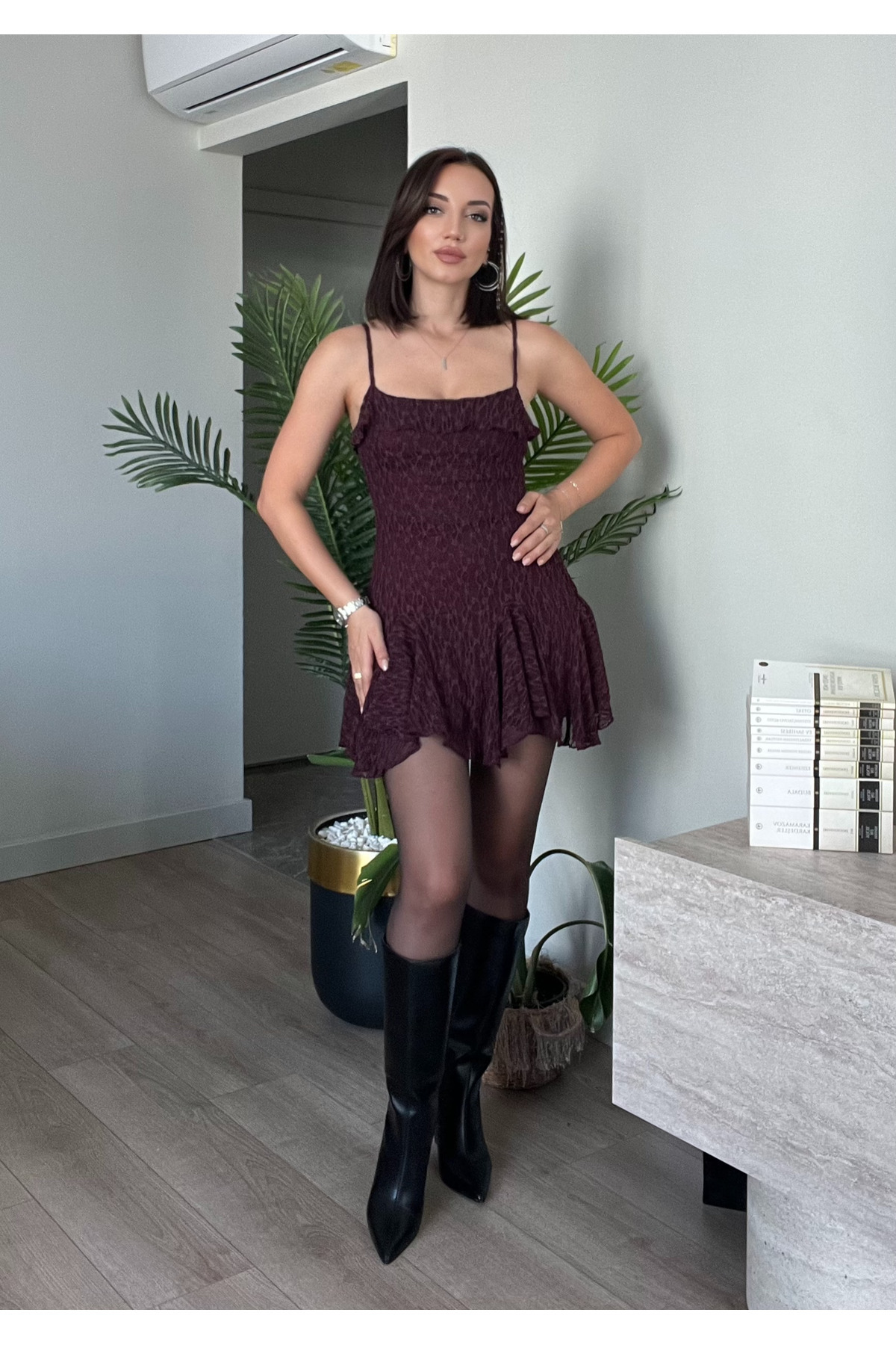 PATEVA Askılı Pileli Dantel Mini Elbise Özellikleri