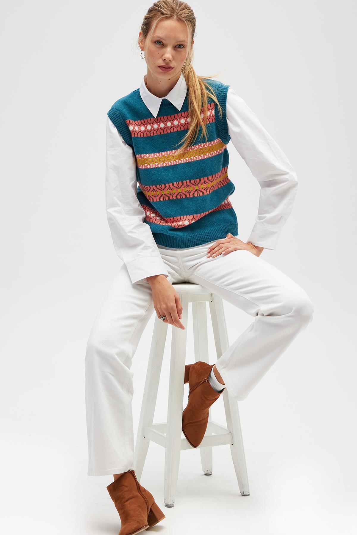 Peraluna Simone Kadın Jakarlı Triko - Mavi
