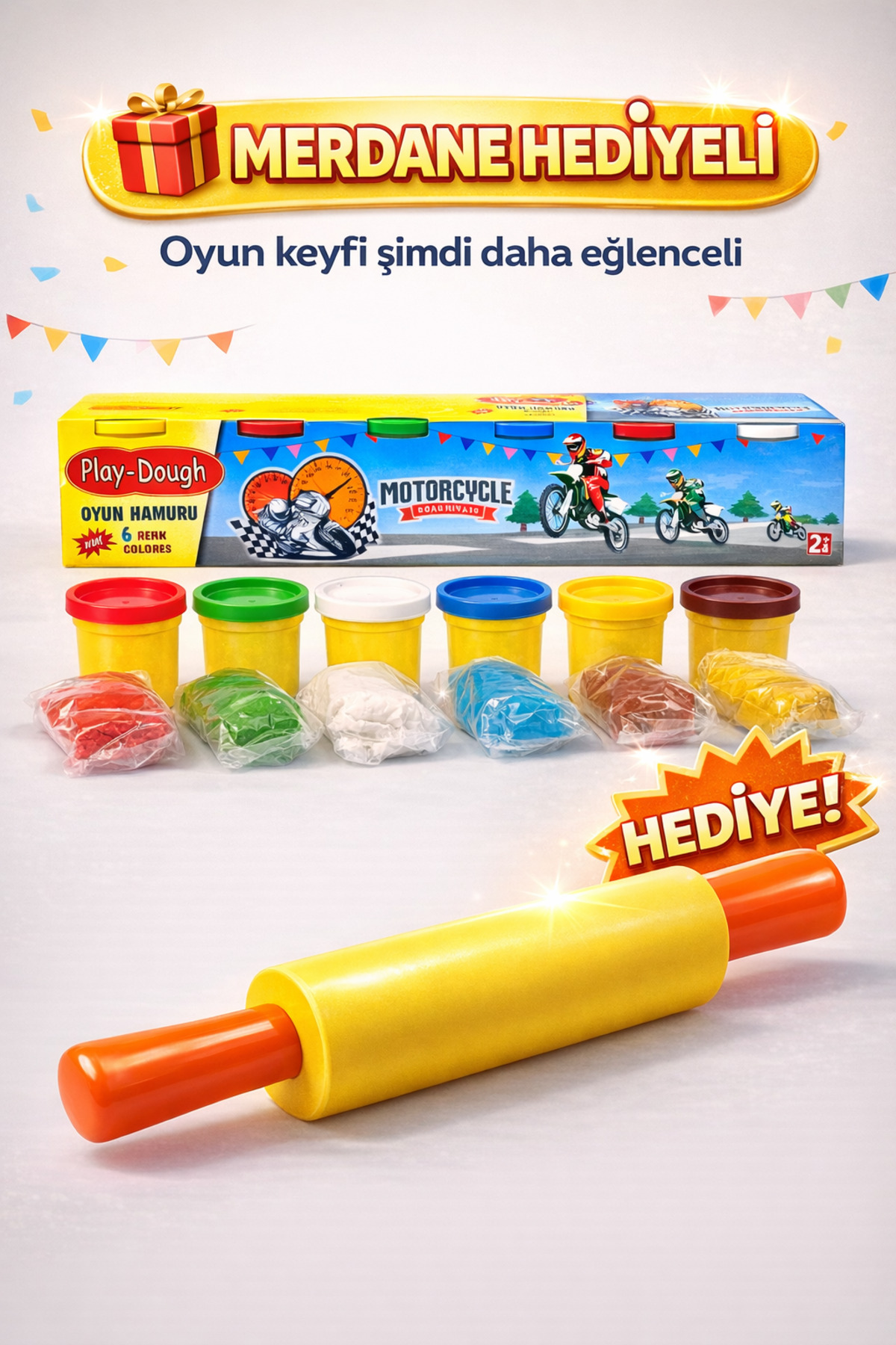 Play Dough Oyun Hamuru 6lı + Merdane Hediyeli