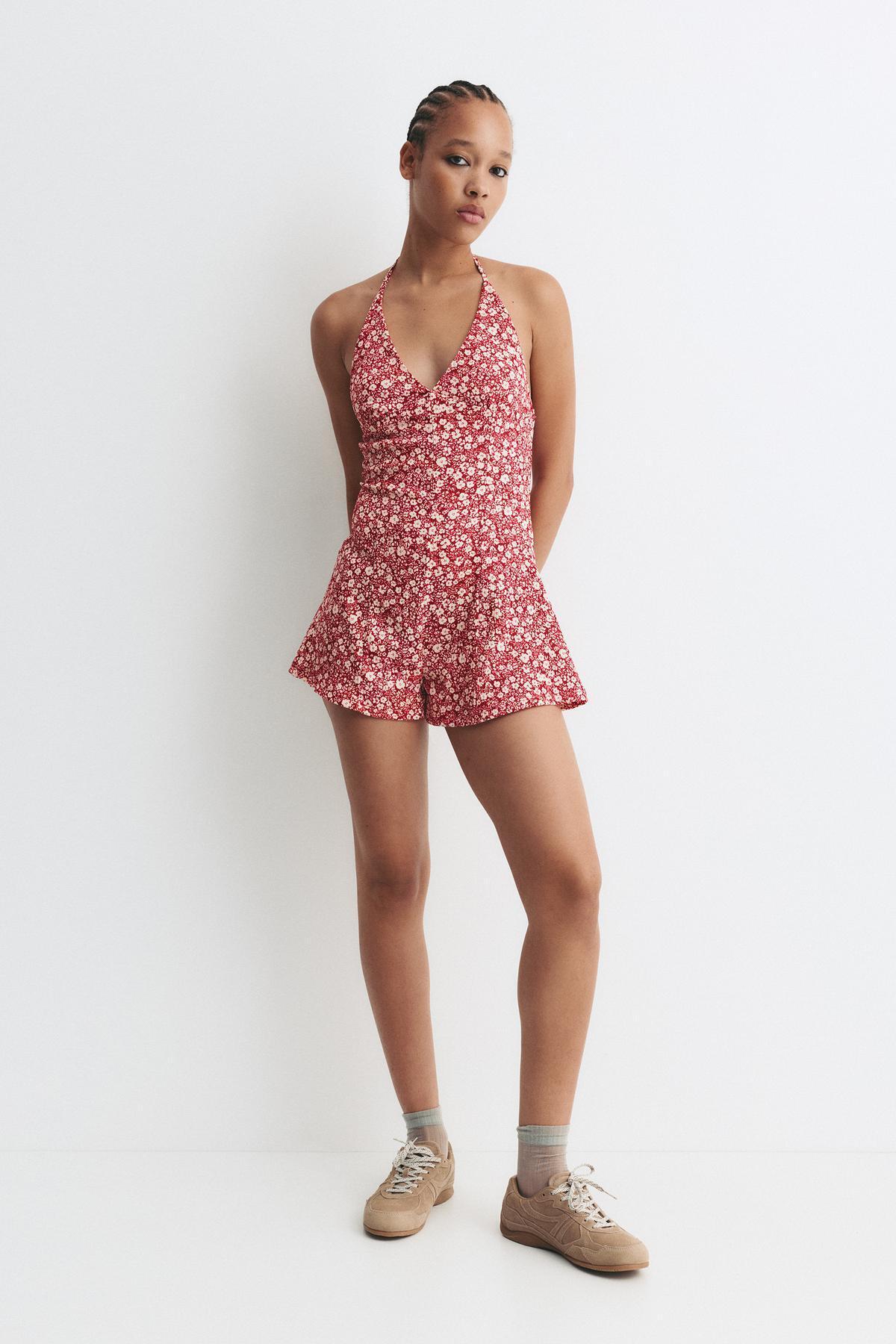 Pull & Bear Çiçekli dokulu kısa tulum Özellikleri