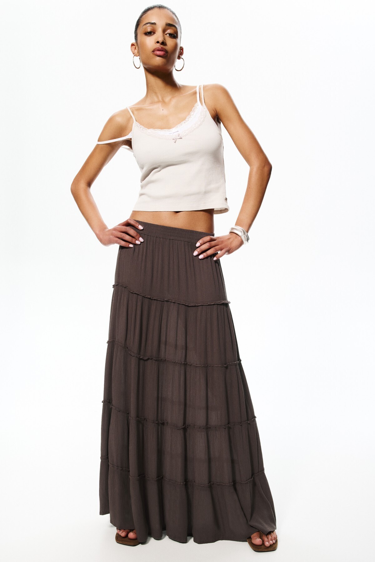 Pull & Bear Elastik belli blok renkli midi etek Özellikleri