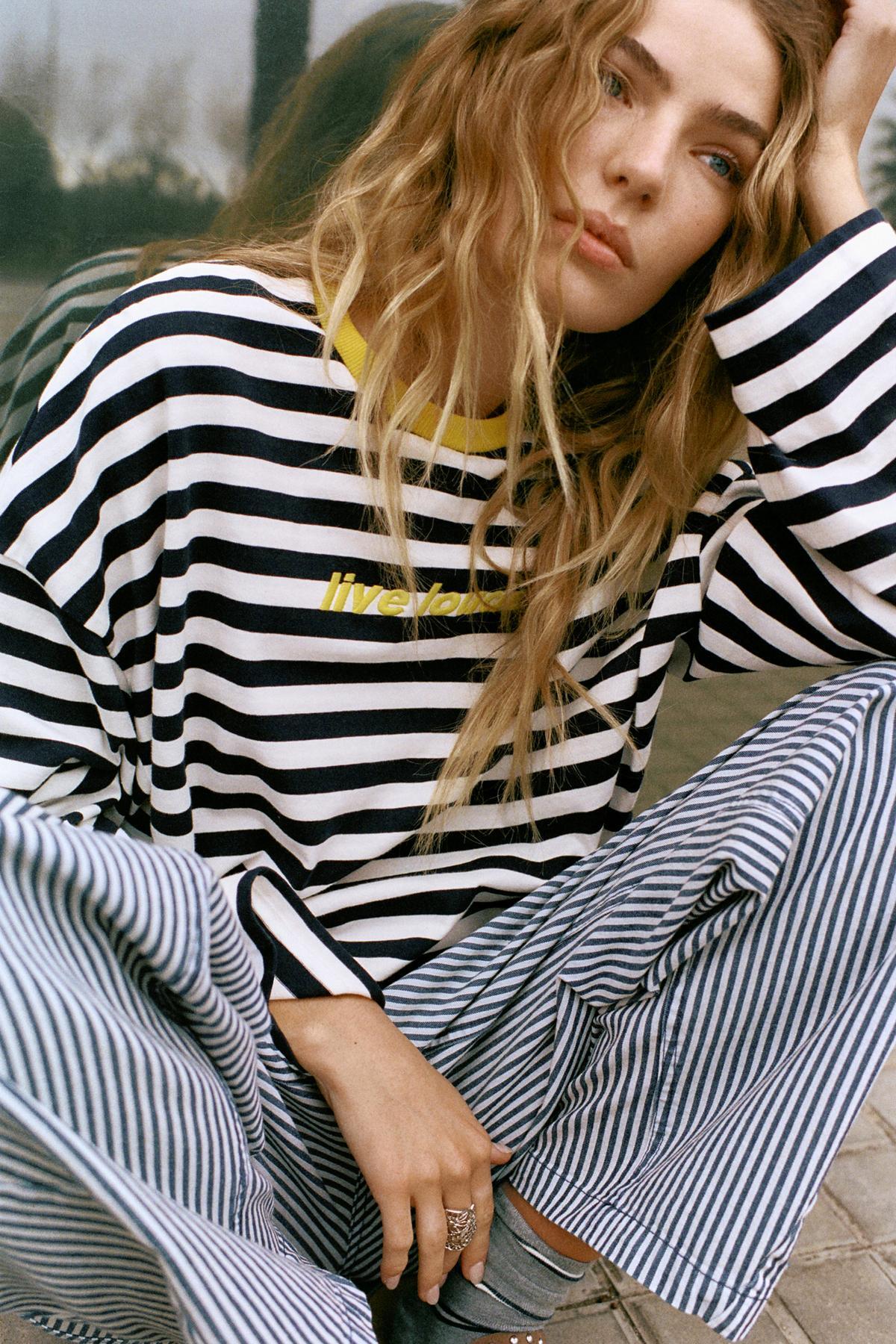 Pull & Bear Kontrast işlemeli çizgili t-shirt Özellikleri