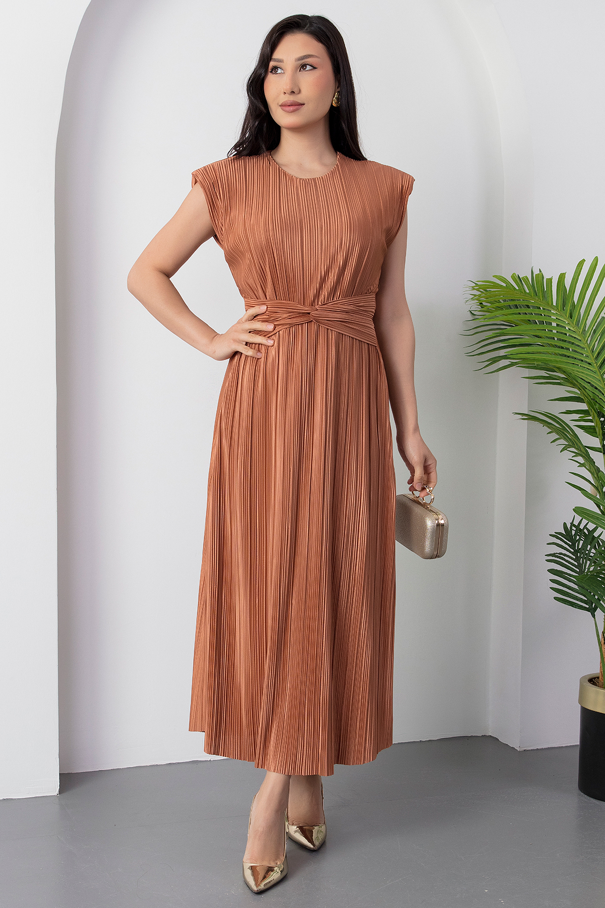 PULLIMM Oval Yaka Omuz Vatkalı Elbise GRS3448 Özellikleri