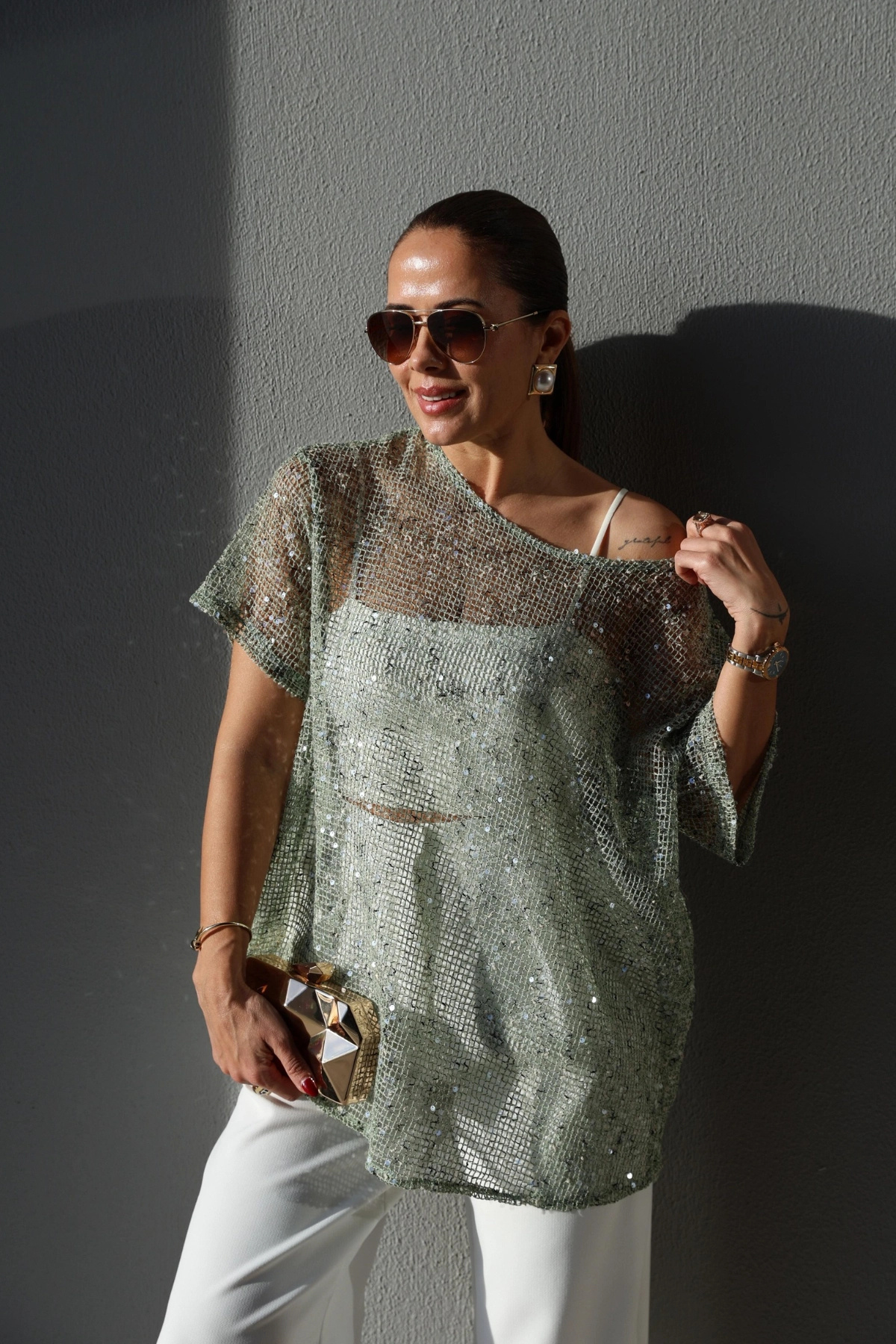 Purple by Banu YEŞİL Pullu Bluz Özellikleri