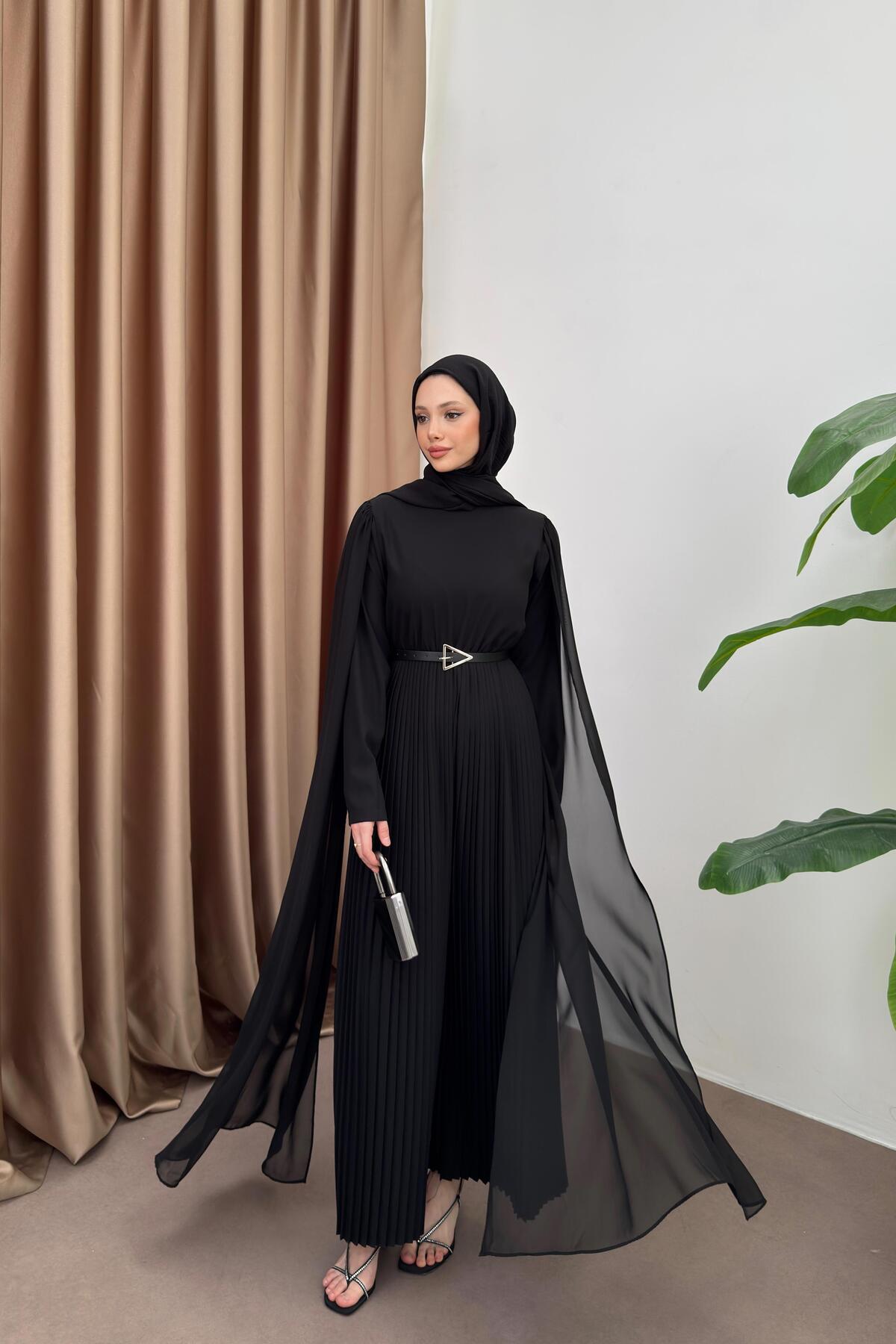 QUQA Pelerinli Piliseli Tulum - Siyah