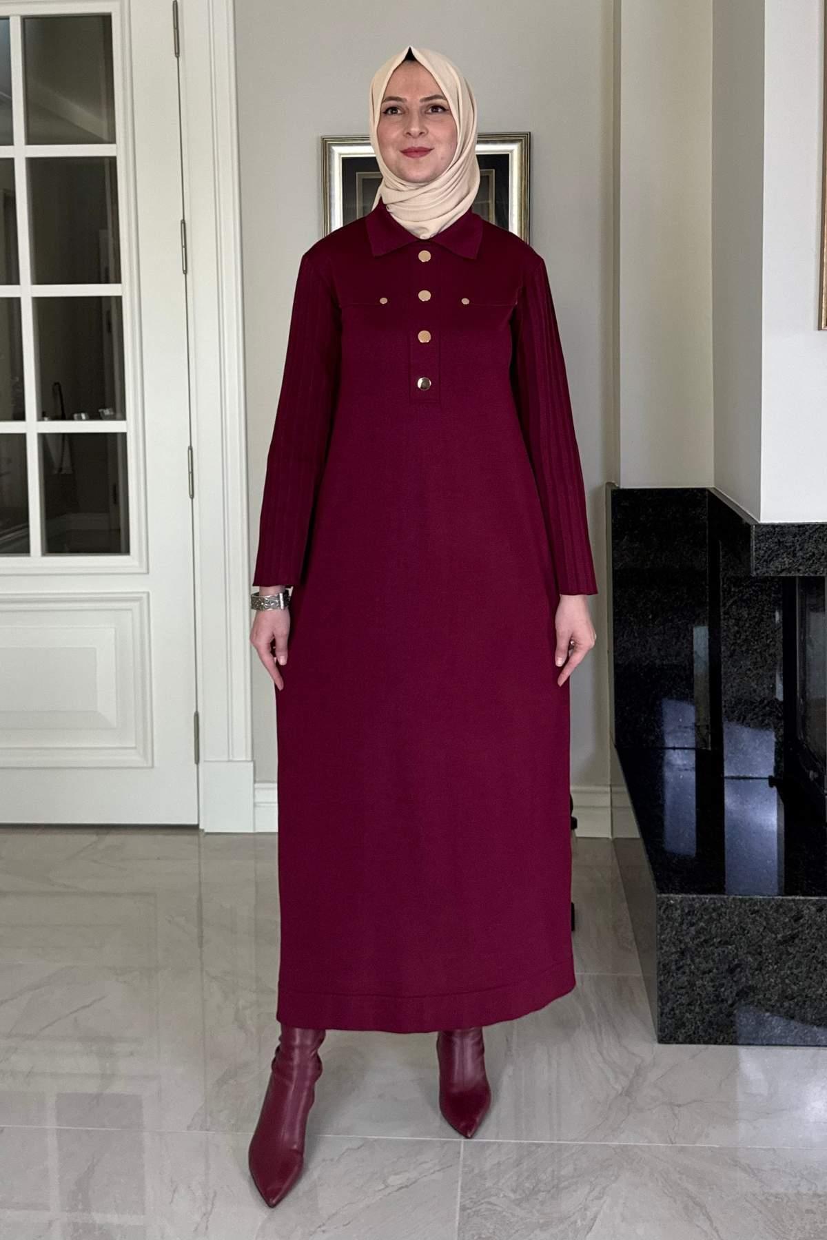Rabia Şamlı Beste Triko Elbise Bordo Özellikleri