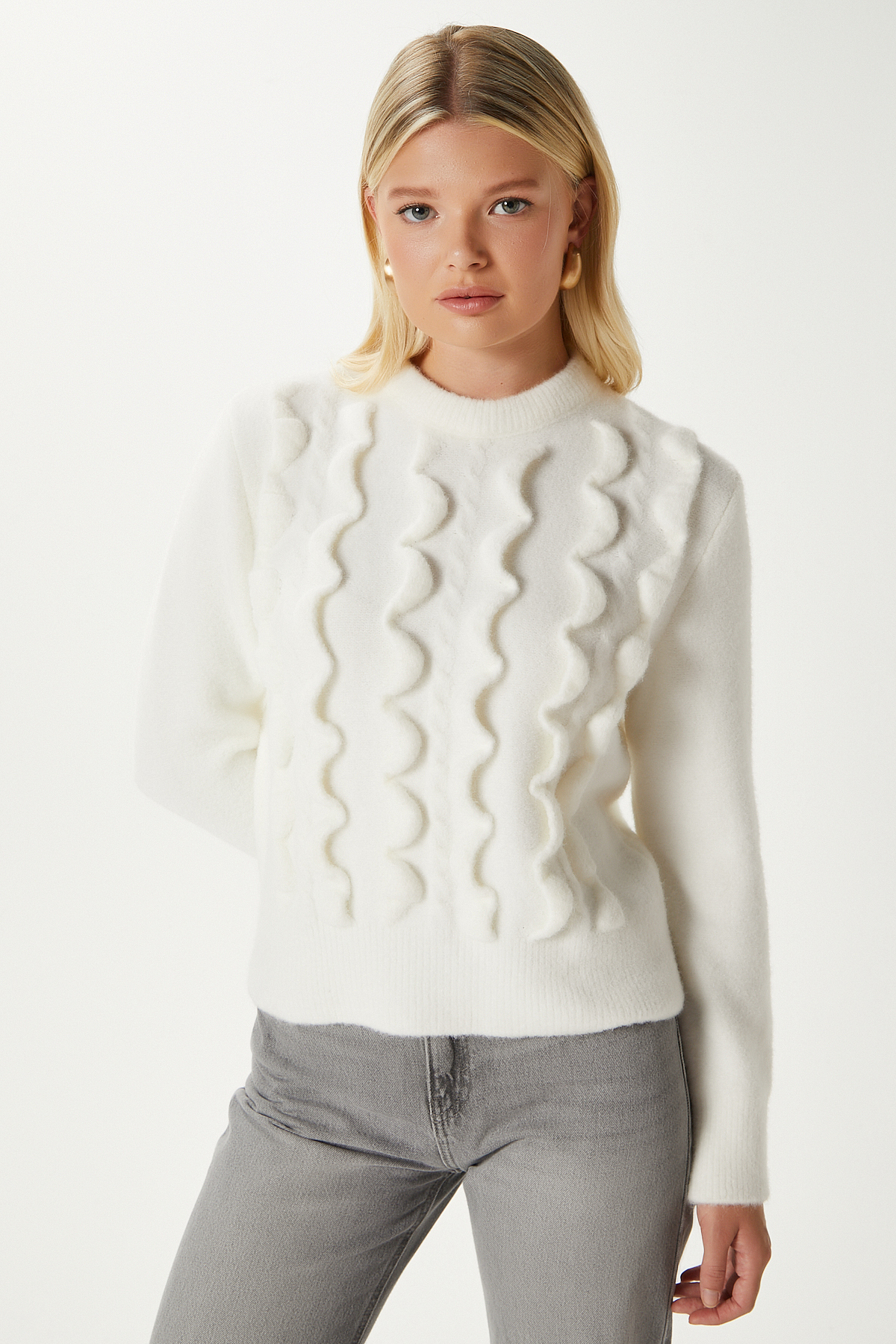 Ritnice Wave Dalgalı Ekru Triko Kazak AQ763 Özellikleri