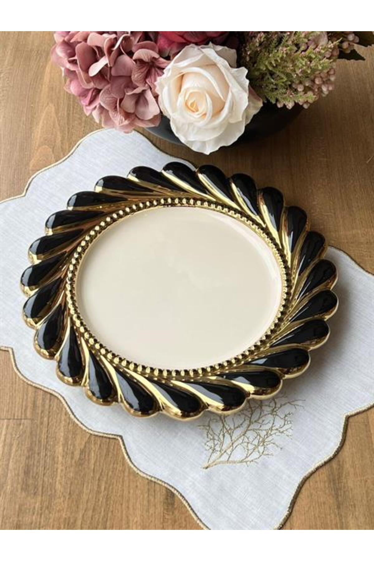 ROSSEV Servis Tabağı Rönesans Black Yuvarlak