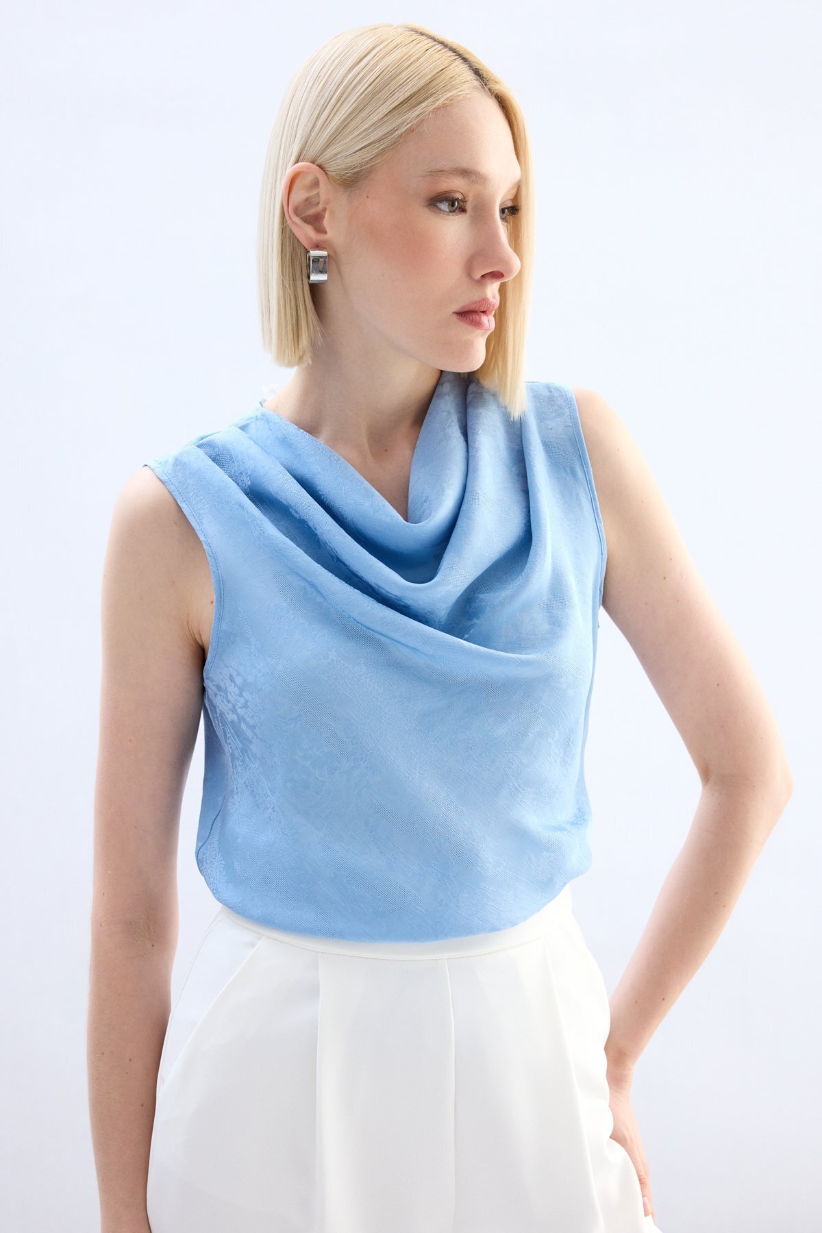 Sateen Degaje Yaka Bluz - Bebe Mavi Özellikleri