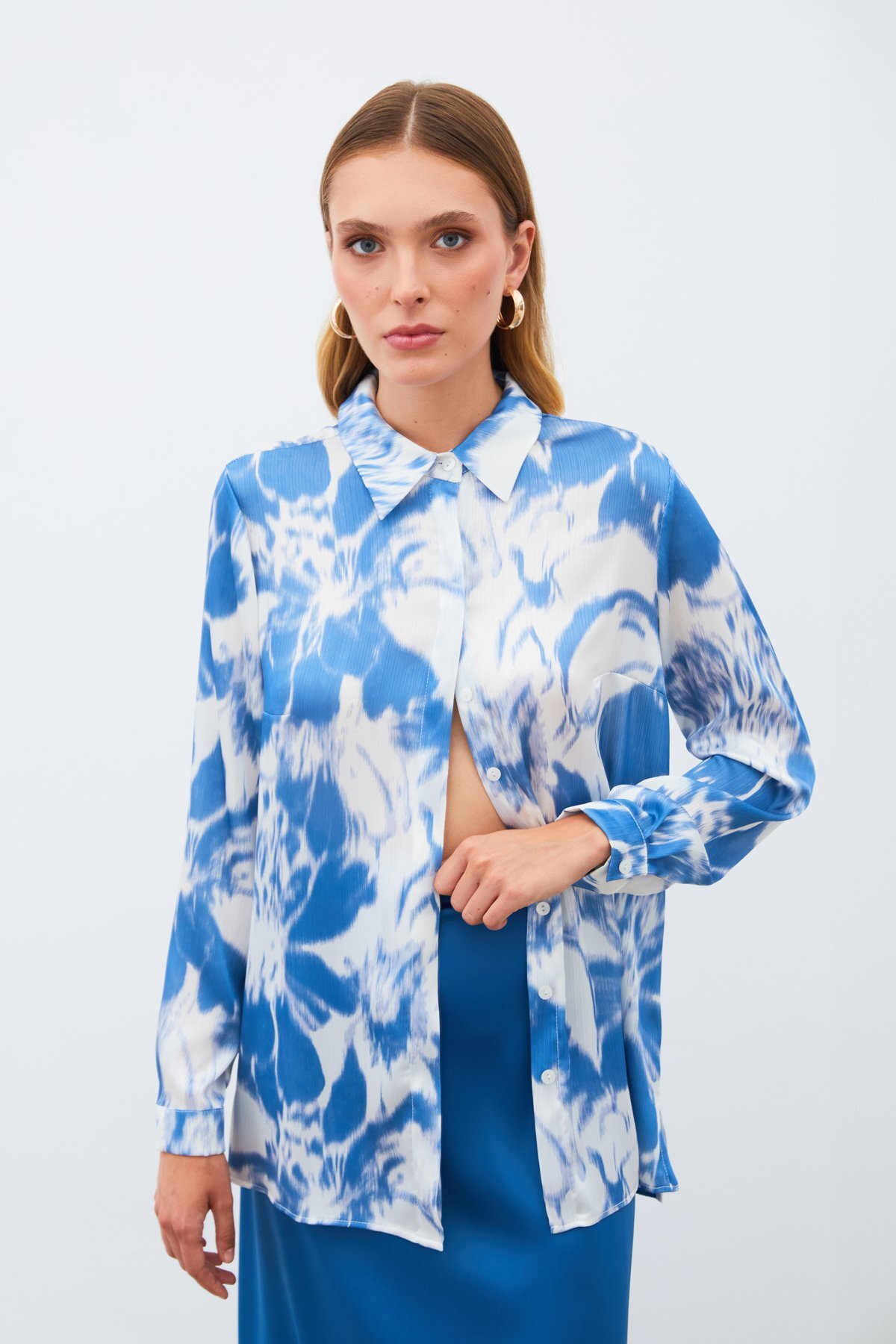 Sateen Desenli Gömlek - Mavi Özellikleri