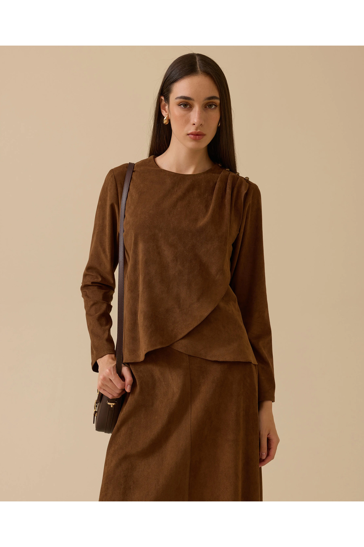 SCL Drapeli Omuz Düğmeli Süet Bluz Özellikleri