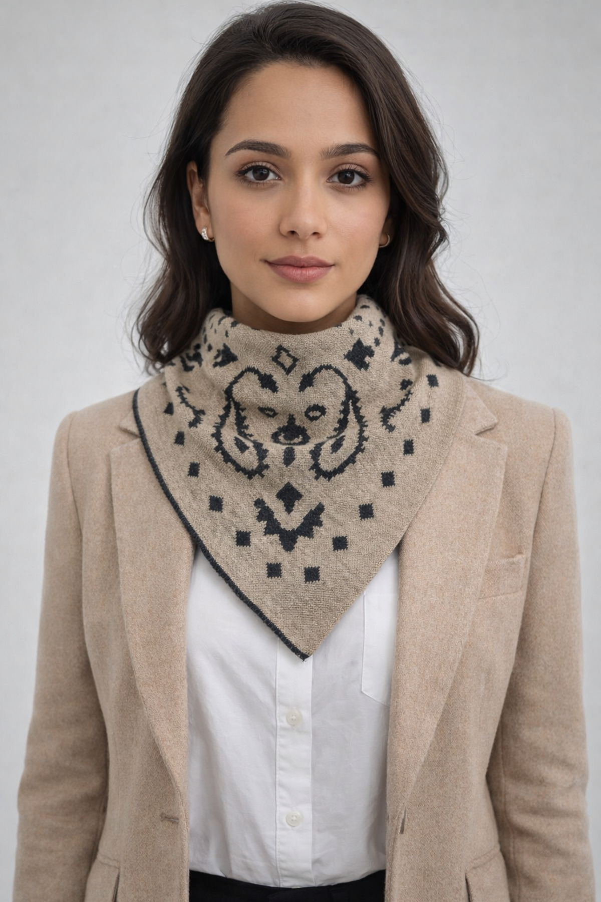 Sebir Moda Desenli Çift Taraflı Triko Üçgen Fular Özellikleri