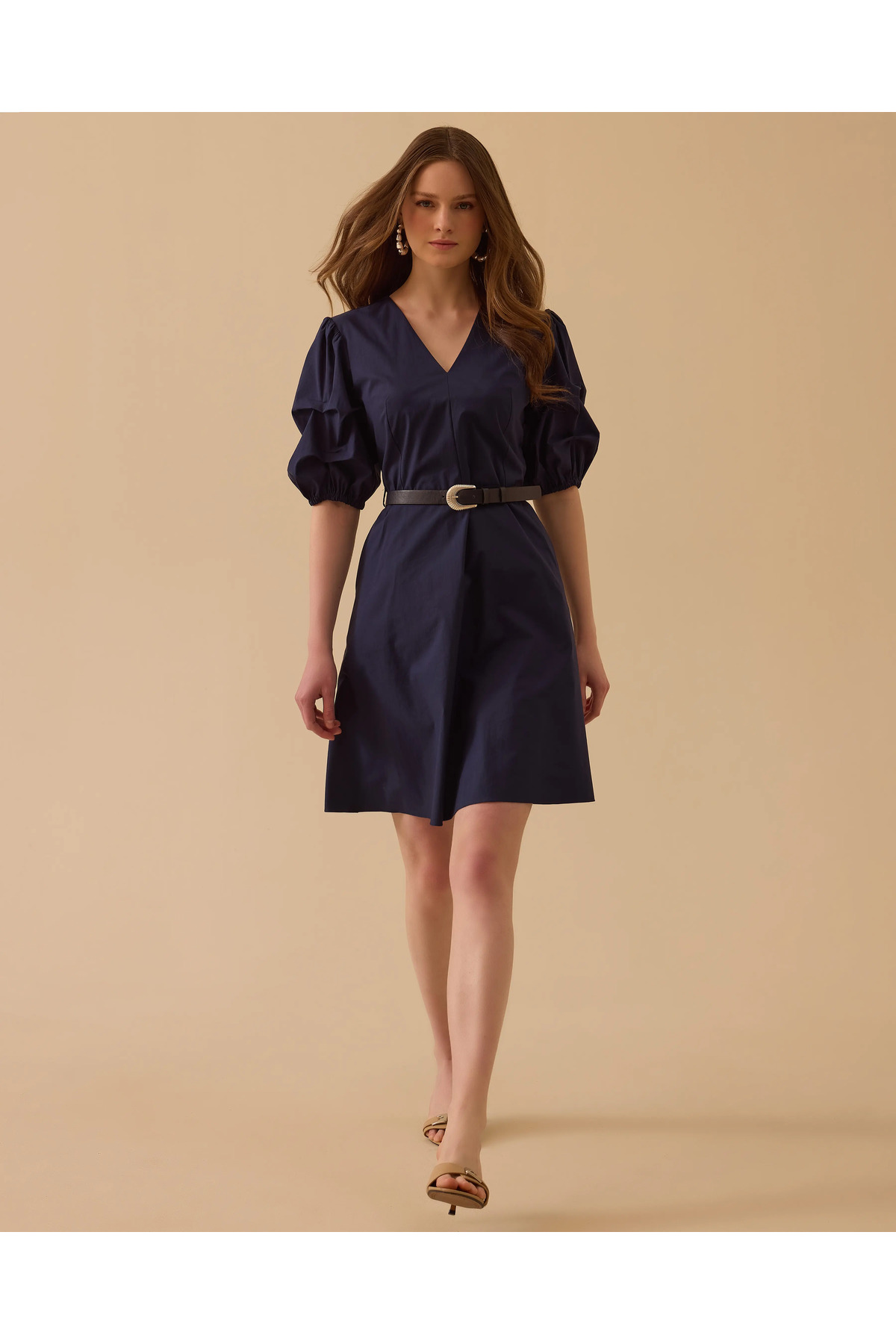 SEÇİL V Yaka Balon Kol Mini Elbise Özellikleri