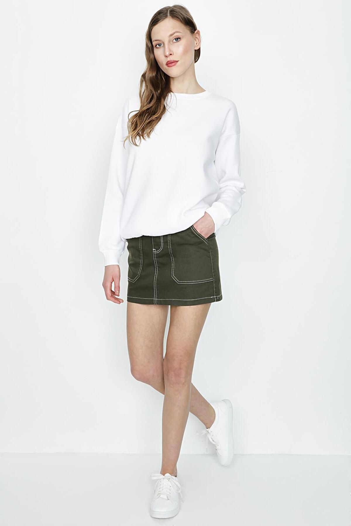 Select Moda Kadın Haki Kontrast Dikişli Mini Etek Özellikleri