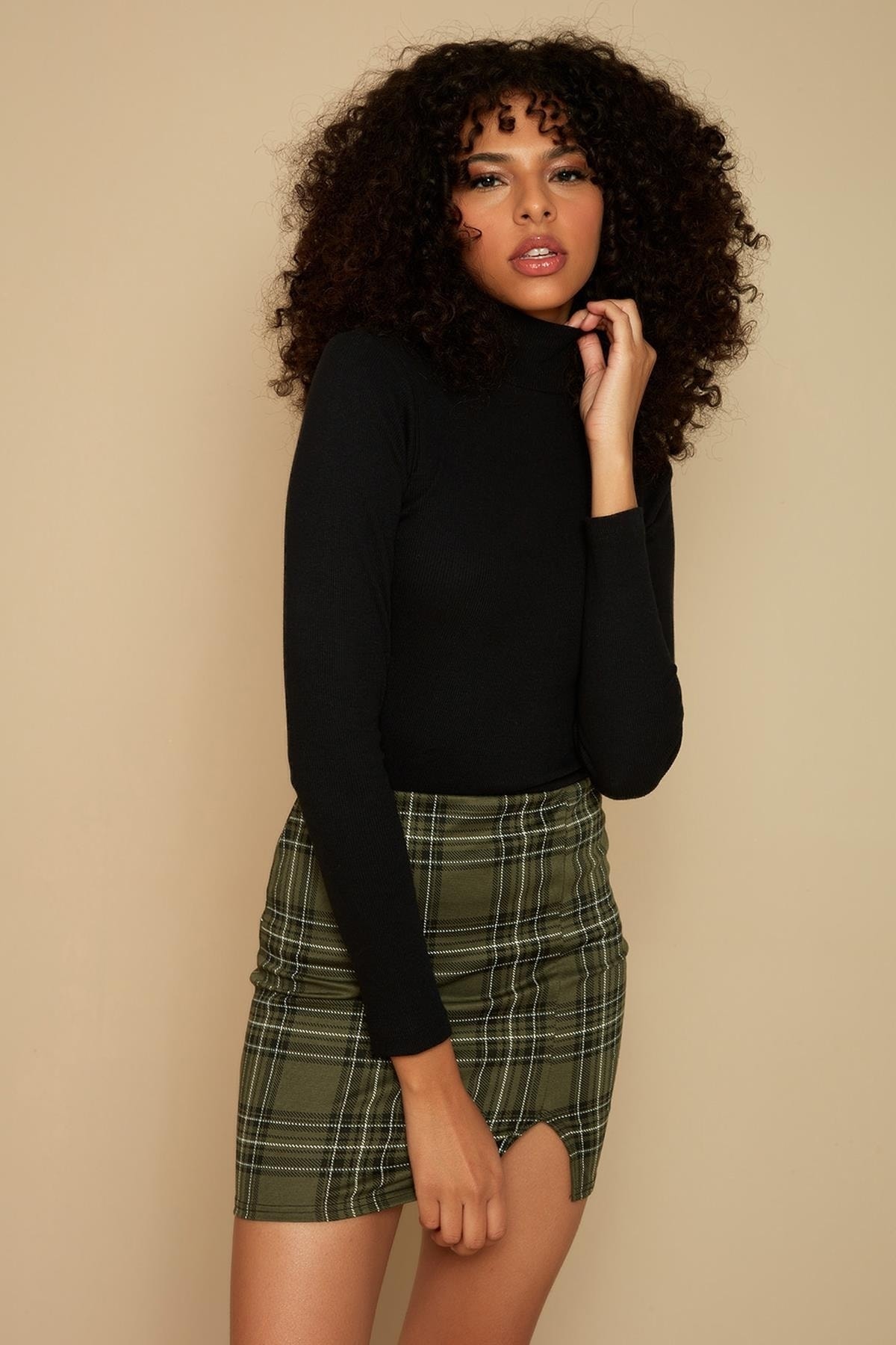 Select Moda Kadın Siyah Balıkçı Yaka Fitilli Örme Bluz
