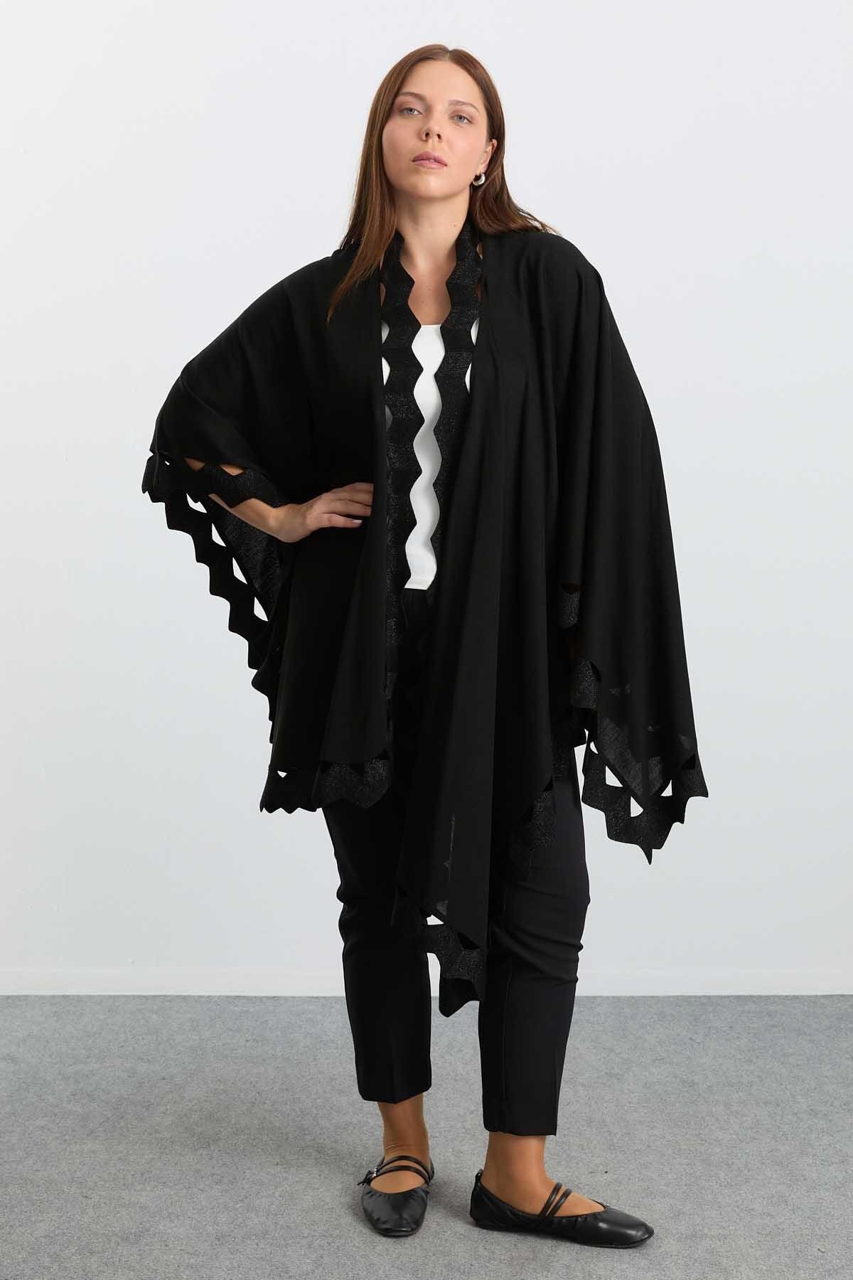 Selen Önü Dilimli Simli Triko Panço / SİYAH Özellikleri