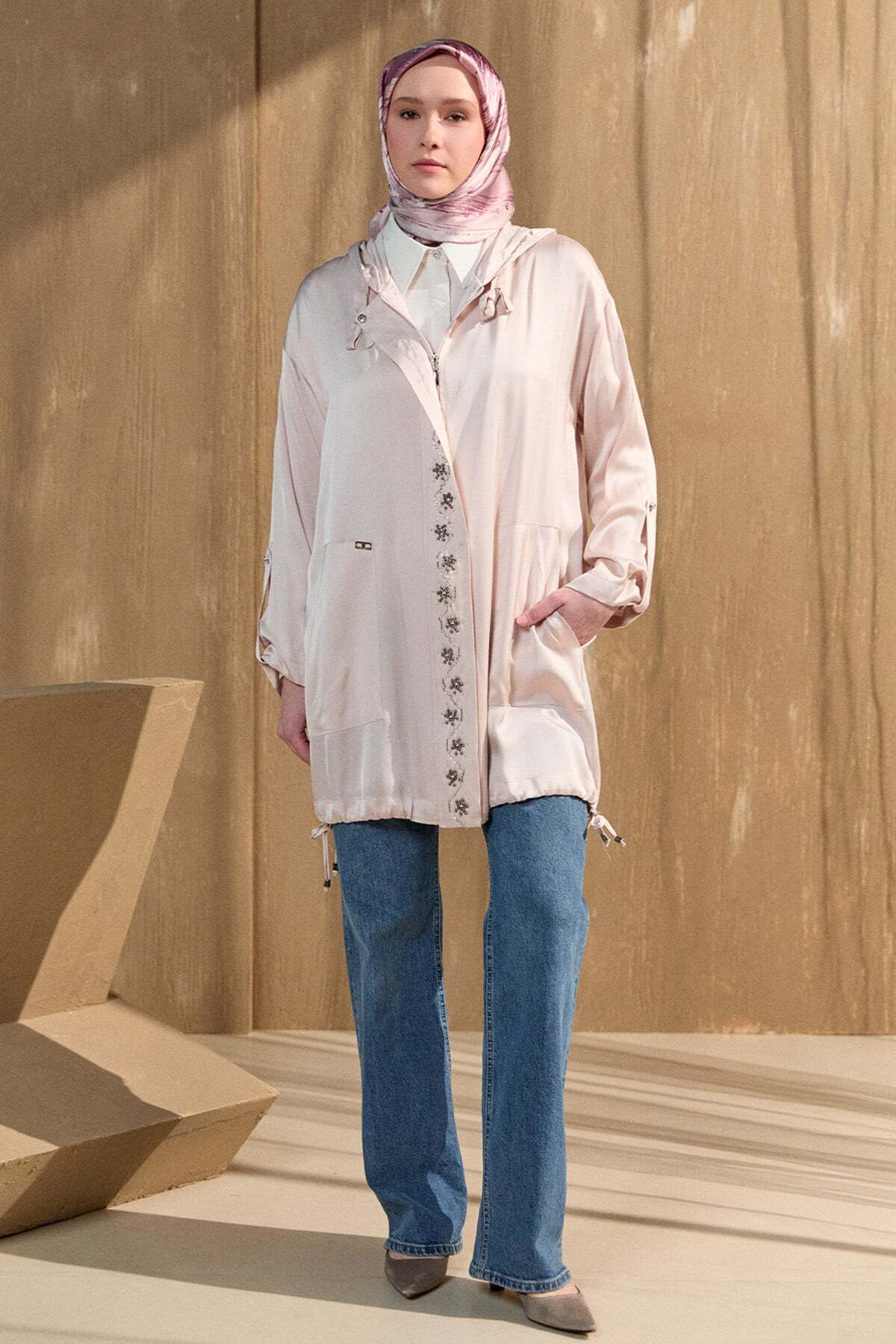 Setrms İşlemeli Floş Saten Tunik Özellikleri