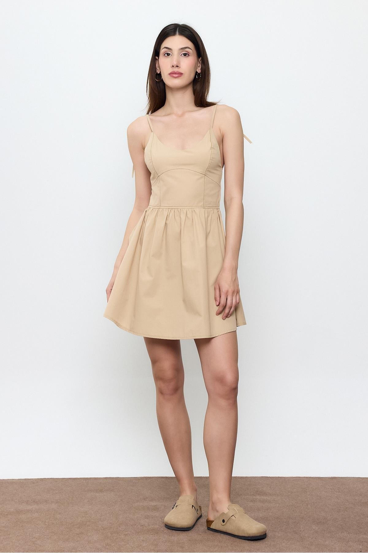 SHERIN Bej %100 Cotton Mini Elbise Özellikleri