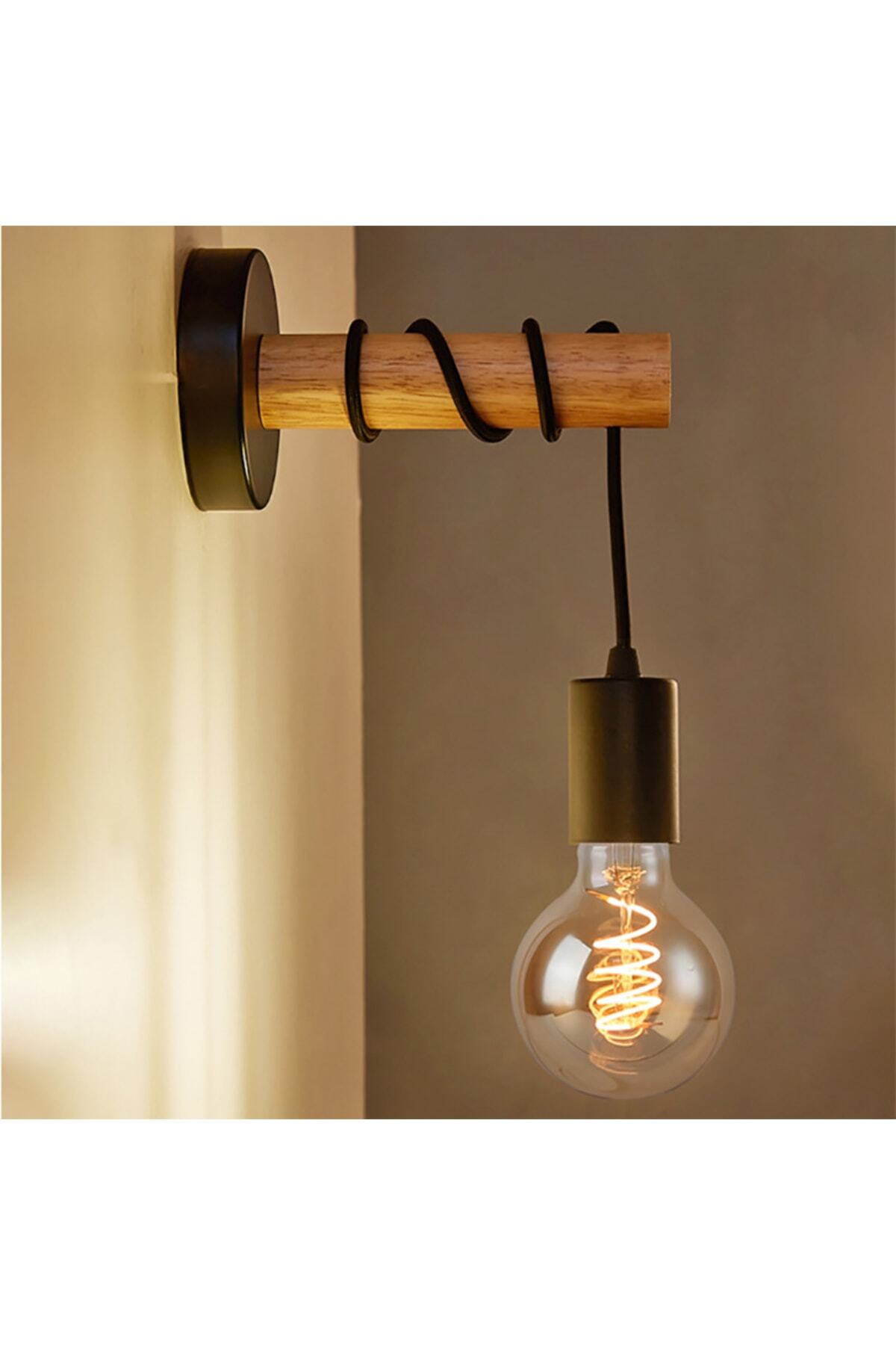 SimaAvize Sima Avize Ahşap Siyah Tekli Duvar Lambası Aplik