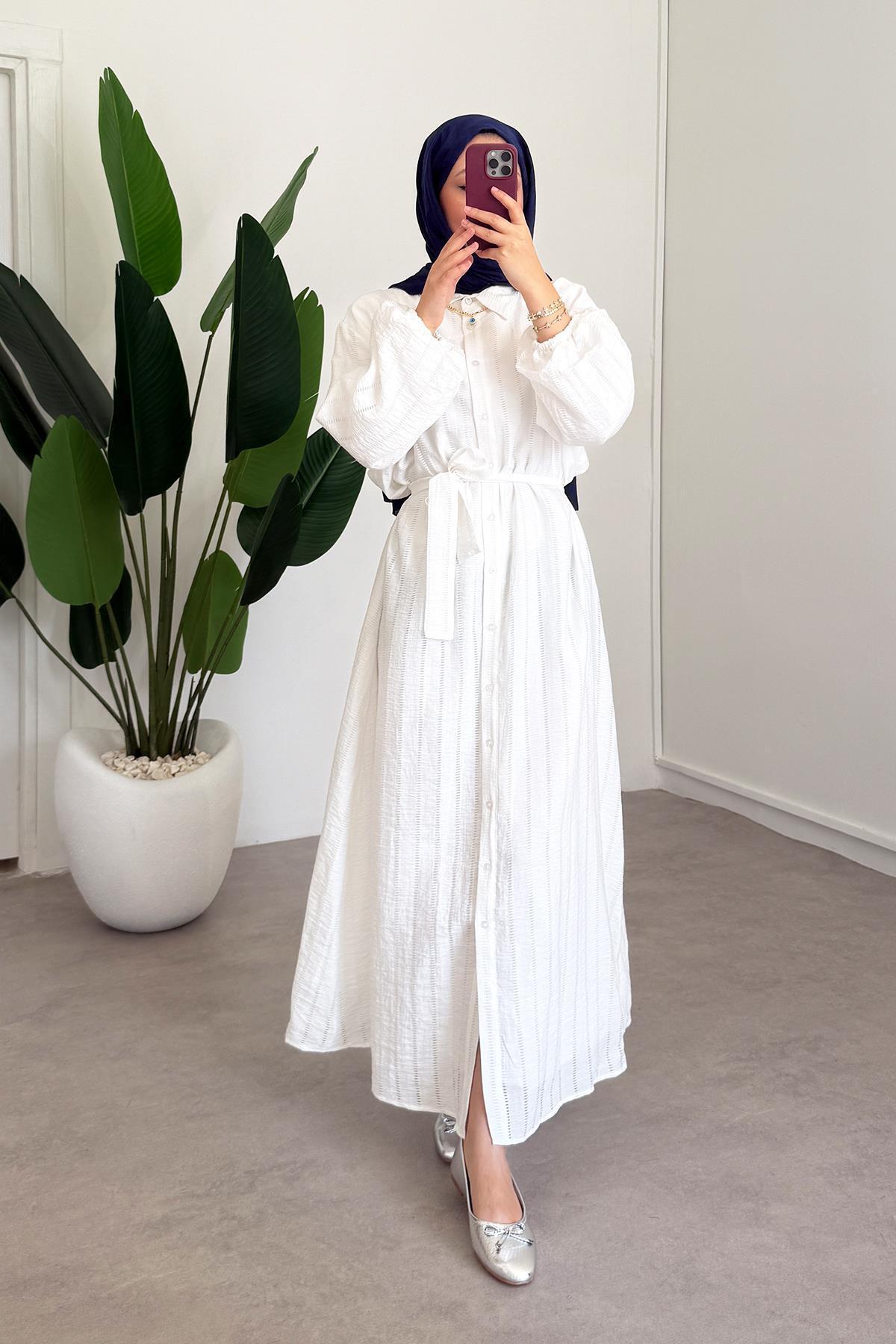 SİNDAL Düğmeli Elbise - Beyaz Özellikleri