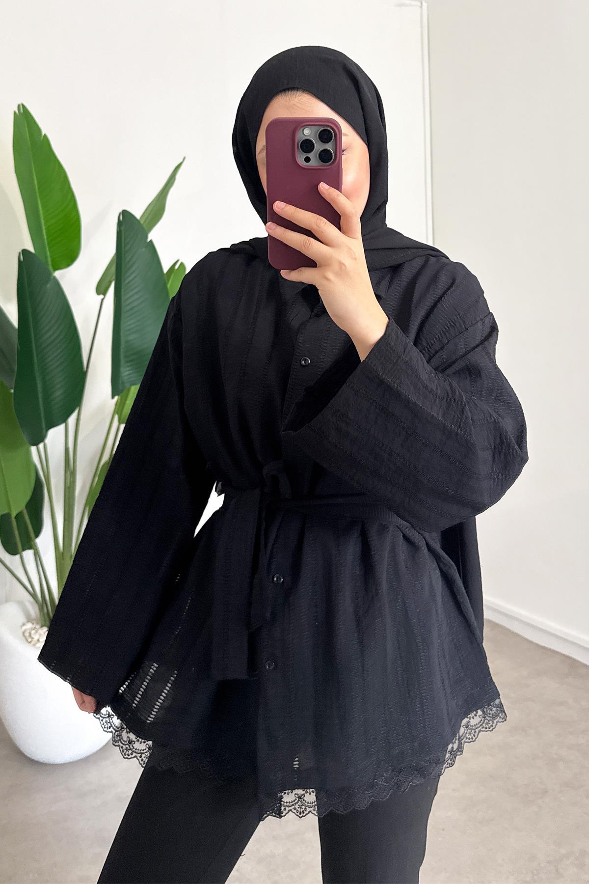 SİNDAL Kemerli Gömlek - Siyah Özellikleri