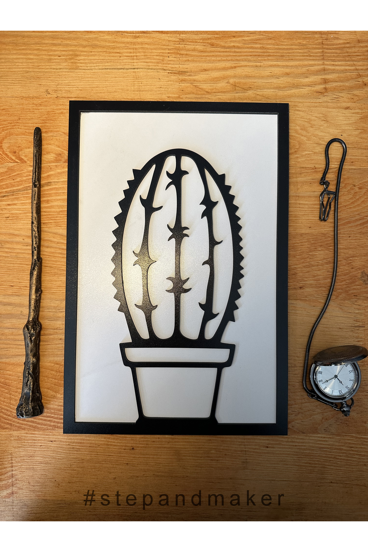 Step and Maker Çift Katmanlı (3D) 'Saksıda Kaktüs' Tablosu