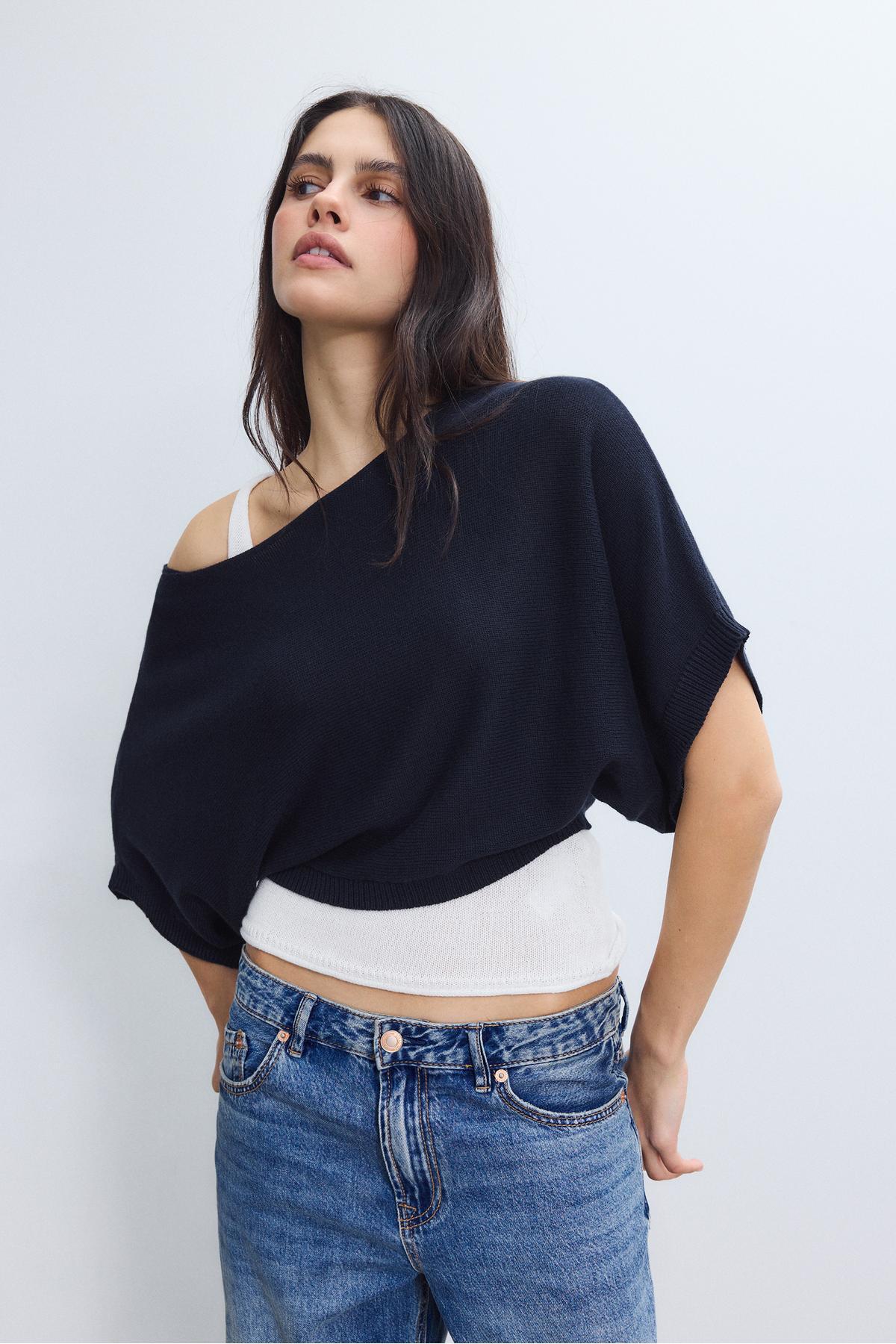 Stradivarius Geniş yaka çift katlı kazak