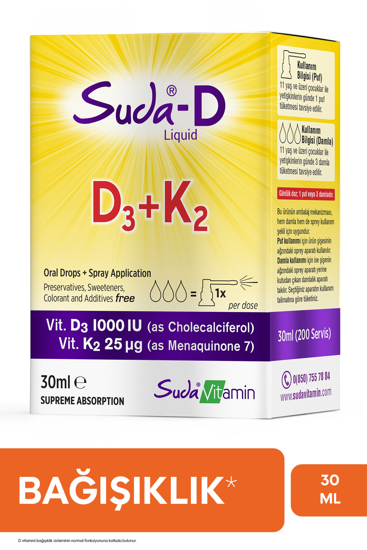 Suda Vitamin Suda-d D3 K2 Sprey&damla 30 ml Özellikleri