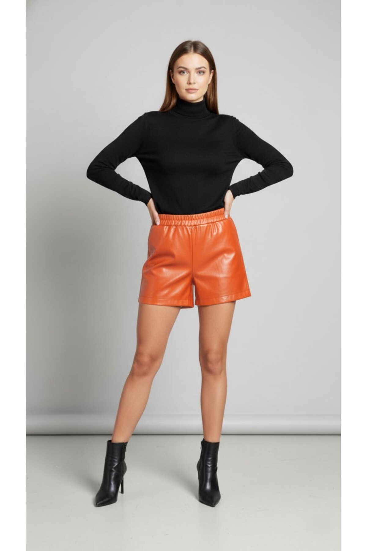 SUHIS Kadın Turuncu Suni Deri Şort Özellikleri