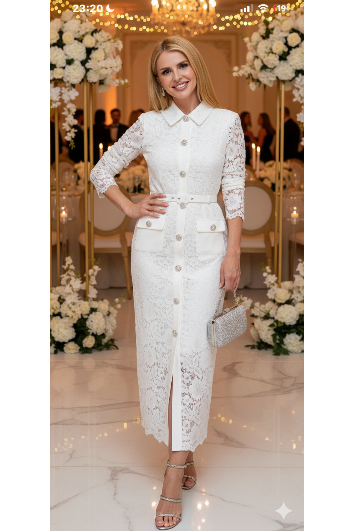 Sultan Ekşioğlu tasarımı beyaz dantel elbise Özellikleri