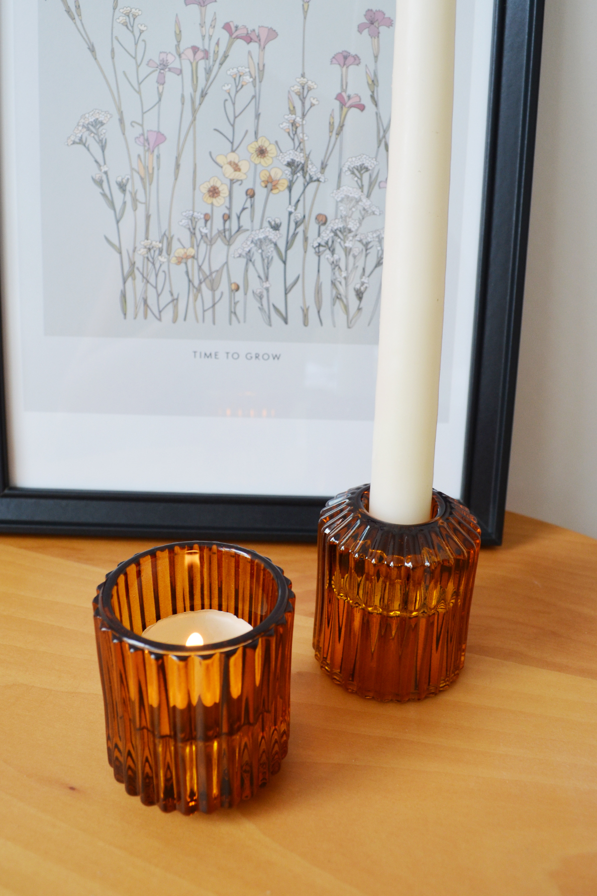 SUM STUDIO Cam Amber Şamdan Mumluk, 2 li Set Çift Taraflı