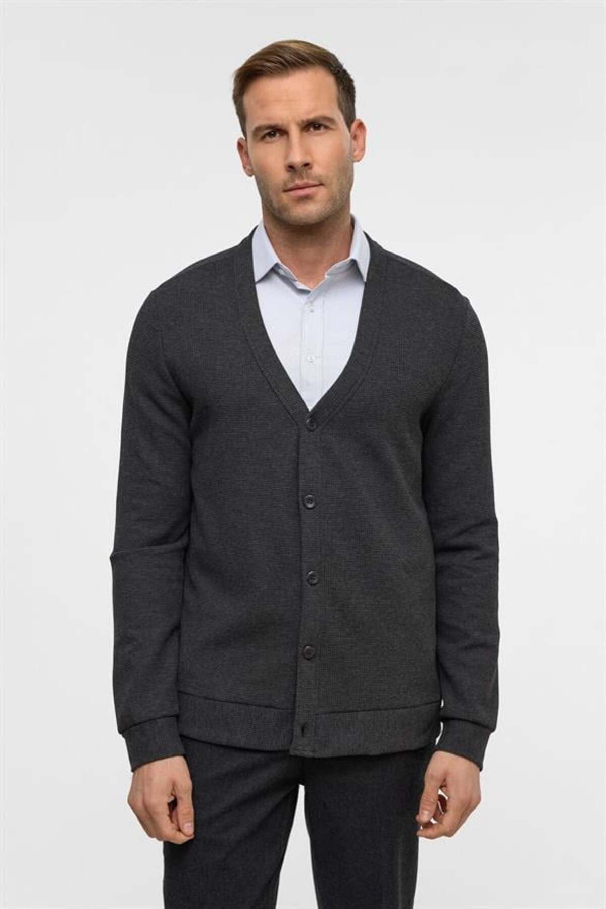 SÜVARİ Antrasit Regular Düz V Yaka Hırka