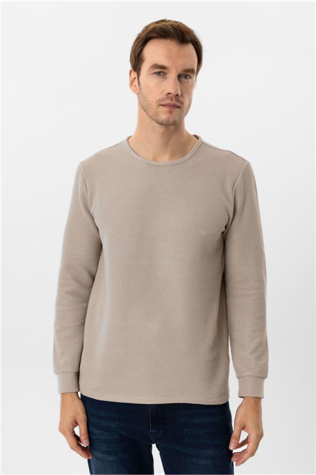 SÜVARİ Bej Slim Armürlü Bisiklet Yaka Triko Özellikleri