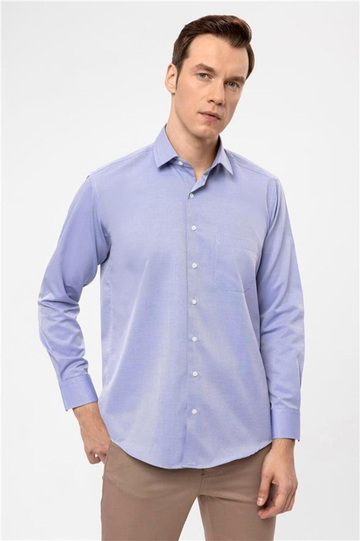 SÜVARİ Mavi Regular Armürlü Klasik Yaka Gömlek Özellikleri