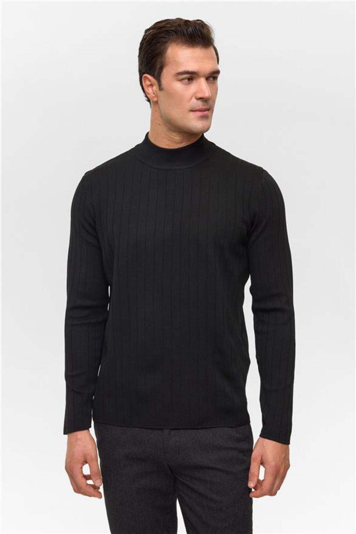 SÜVARİ Siyah Regular Desenli Bisiklet Yaka Triko Özellikleri