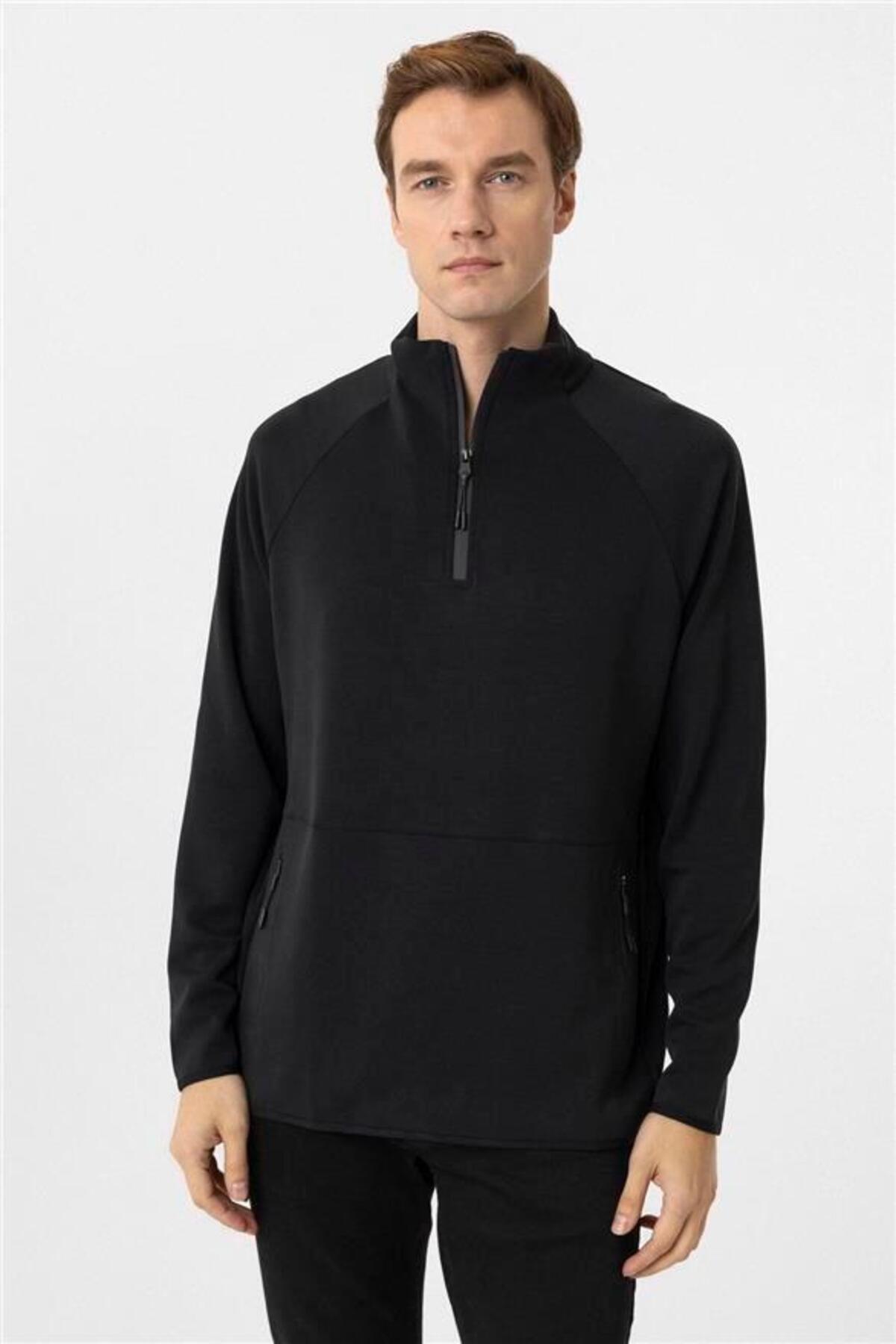 SÜVARİ Siyah Regular Düz Yarım Balıkçı Yaka Triko