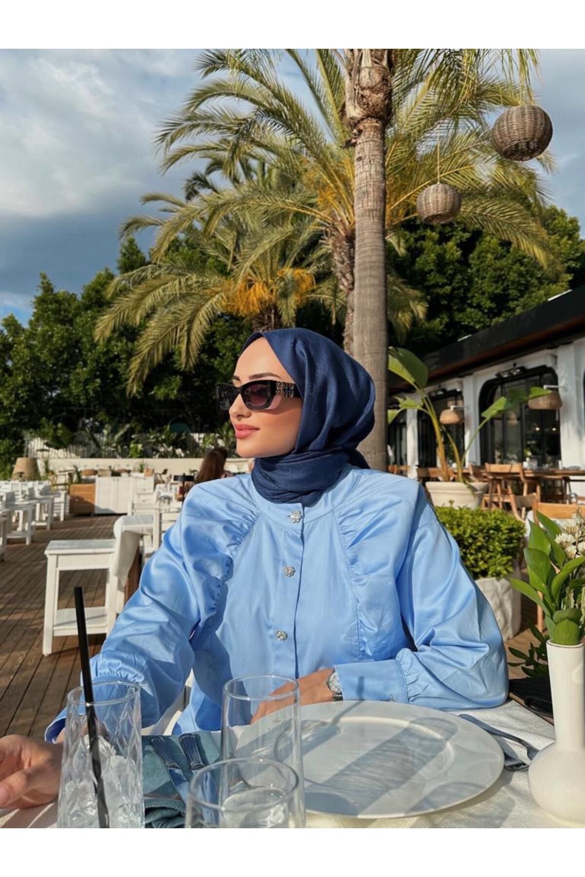 tafta Bebe Mavisi Ahu Gömlek