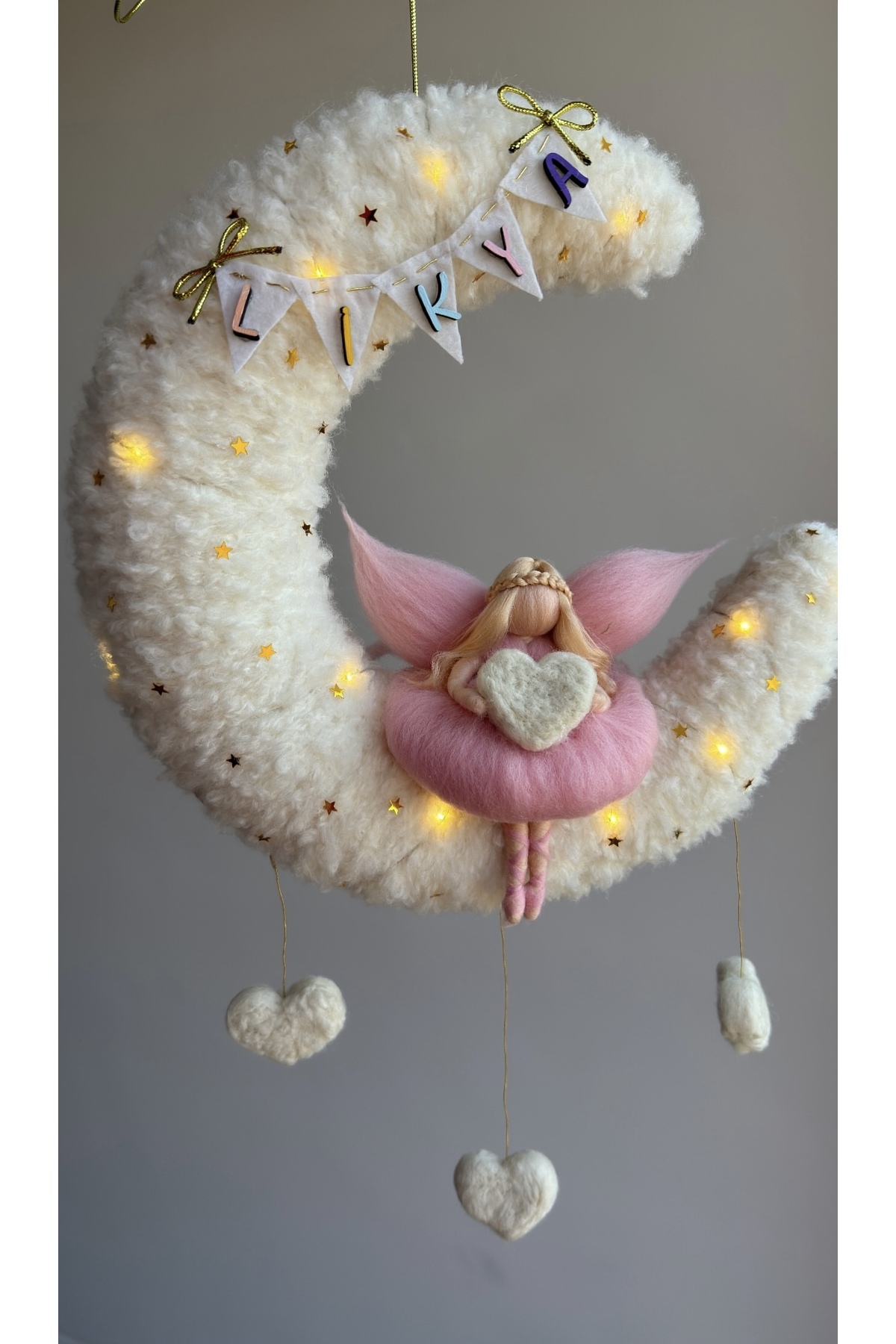 Tasarım Işıklı ay kapı süsü, keçe peri bebek