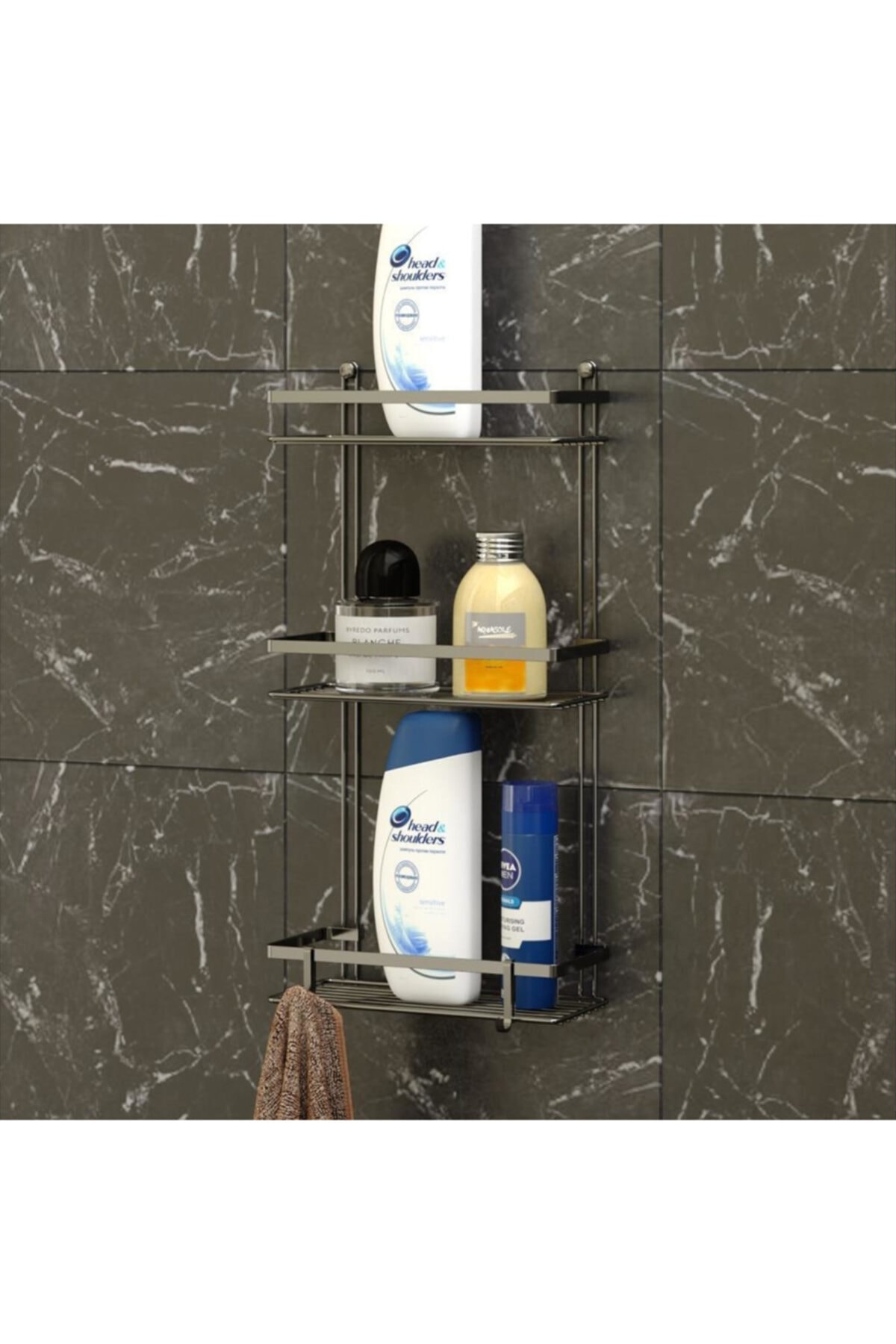 Teknotel 3 Katlı Kancalı Banyo Rafı - Siyah