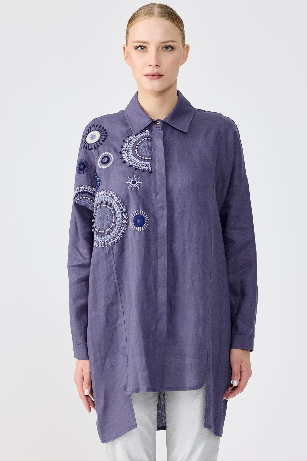 Tığ Triko Robası İşlemeli Gömlek İNDİGO Özellikleri