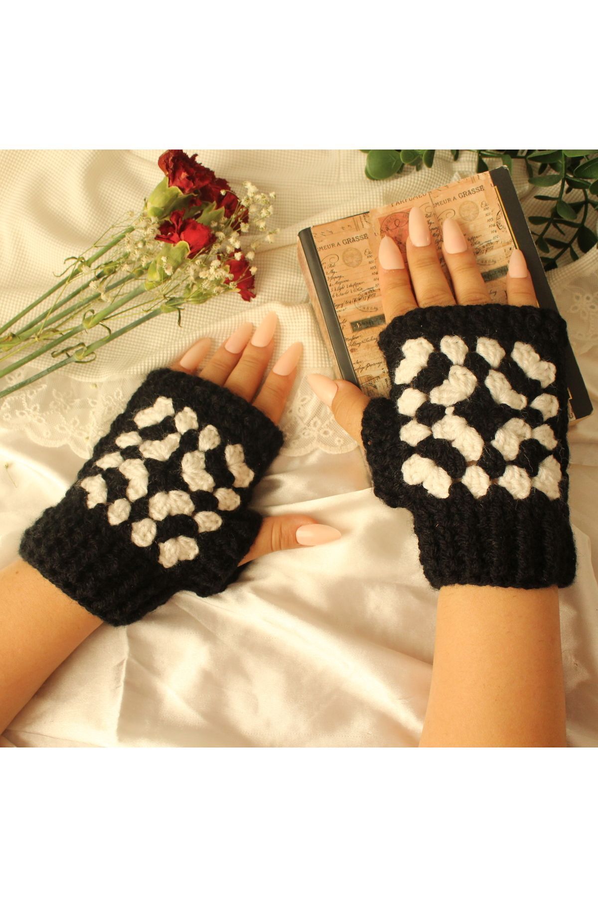 TRENDİN YOLU El Yapımı Parmaksız Model Kışlık Eldiven Siyah Beyaz 3d Özellikleri
