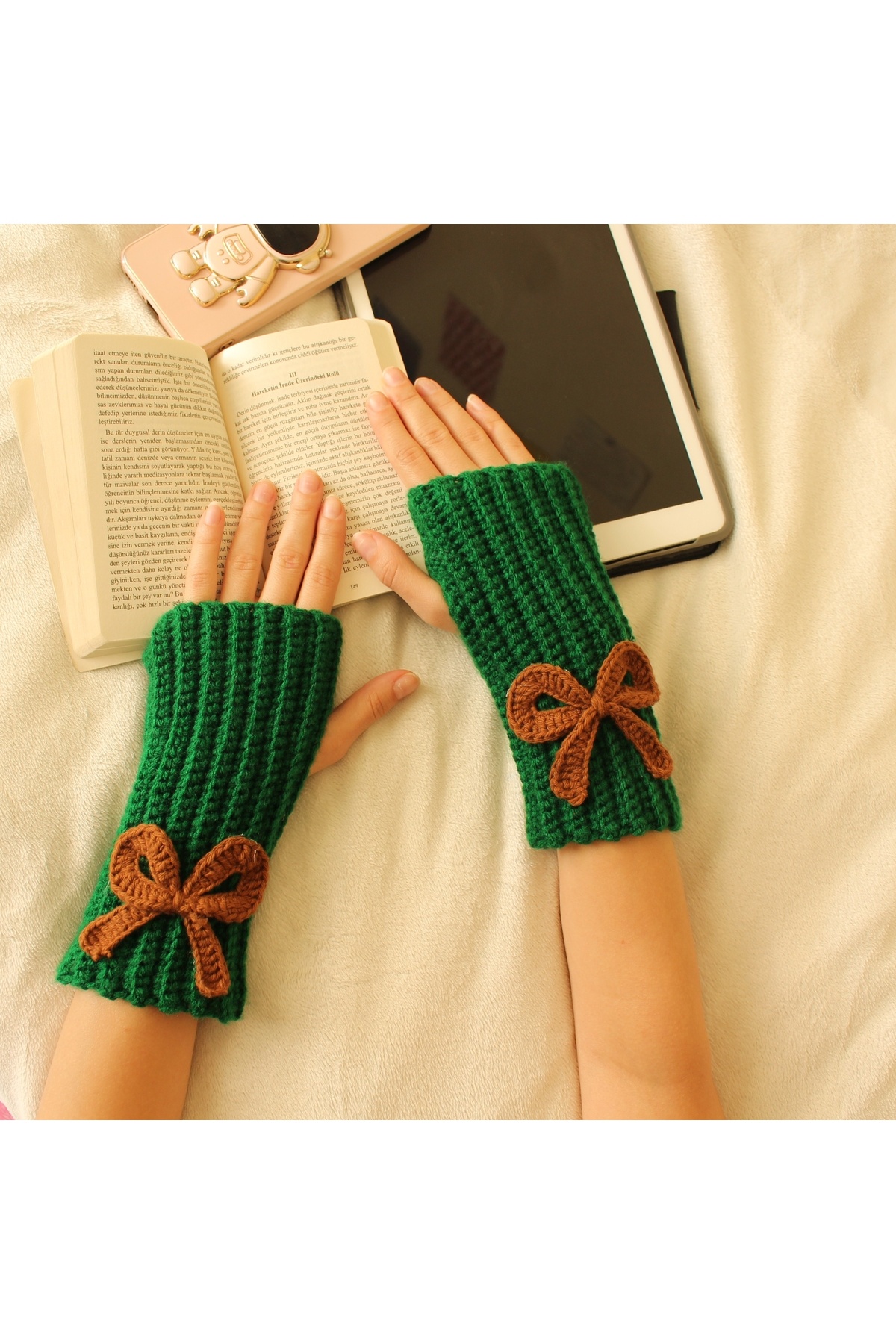 TRENDİN YOLU El Yapımı Parmaksız Model Kışlık Eldiven Yeşil Kk Özellikleri