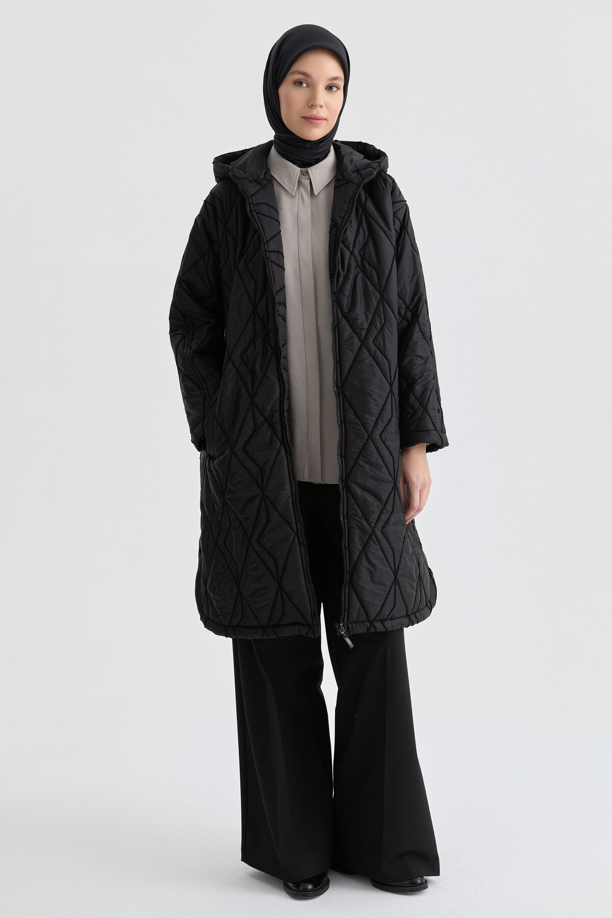 Tuğba Kapüşonlu Kapitone Kaban - Siyah Özellikleri