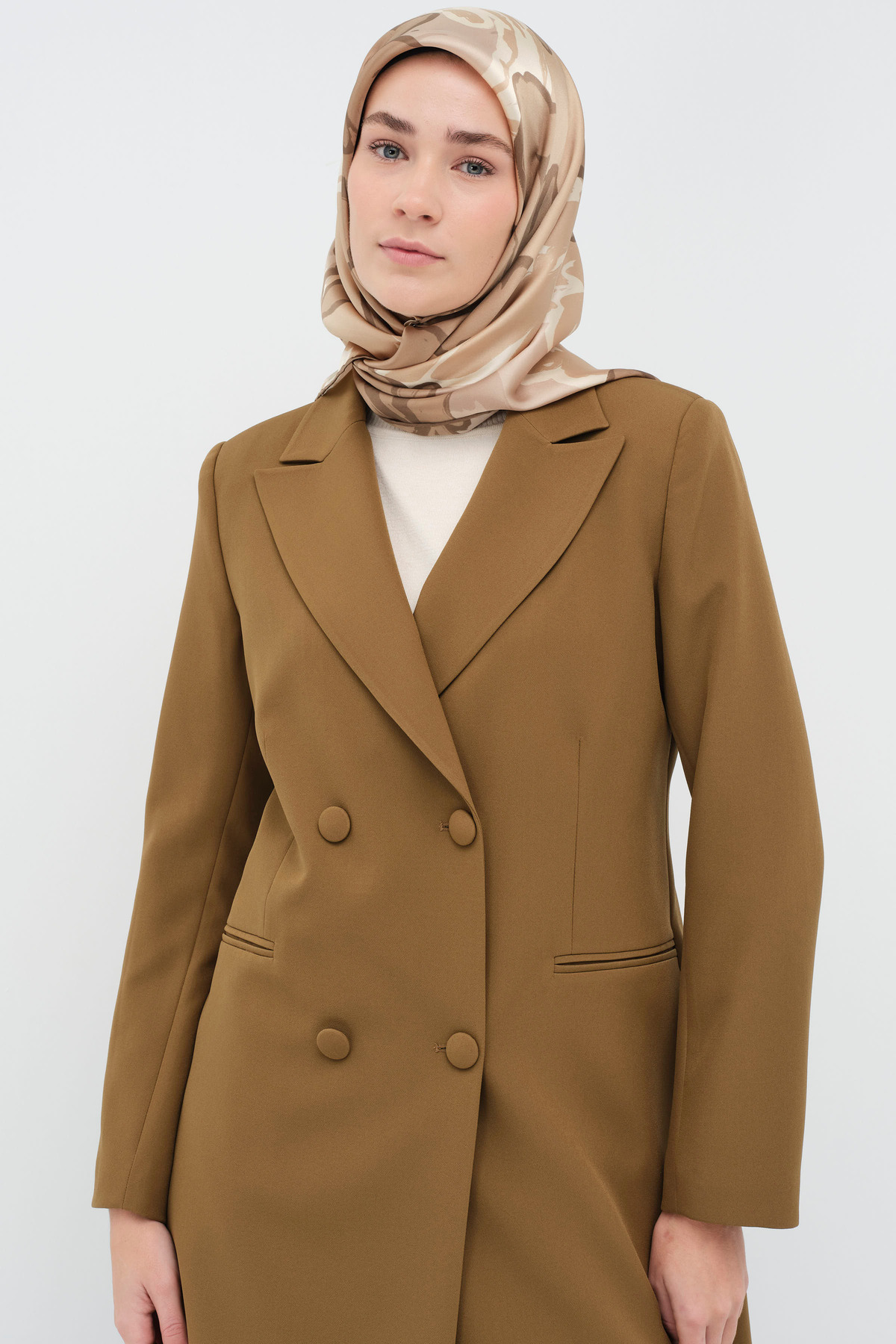 Tuğba Kruvaze Düğmeli Uzun Basic Ceket - Olive Özellikleri